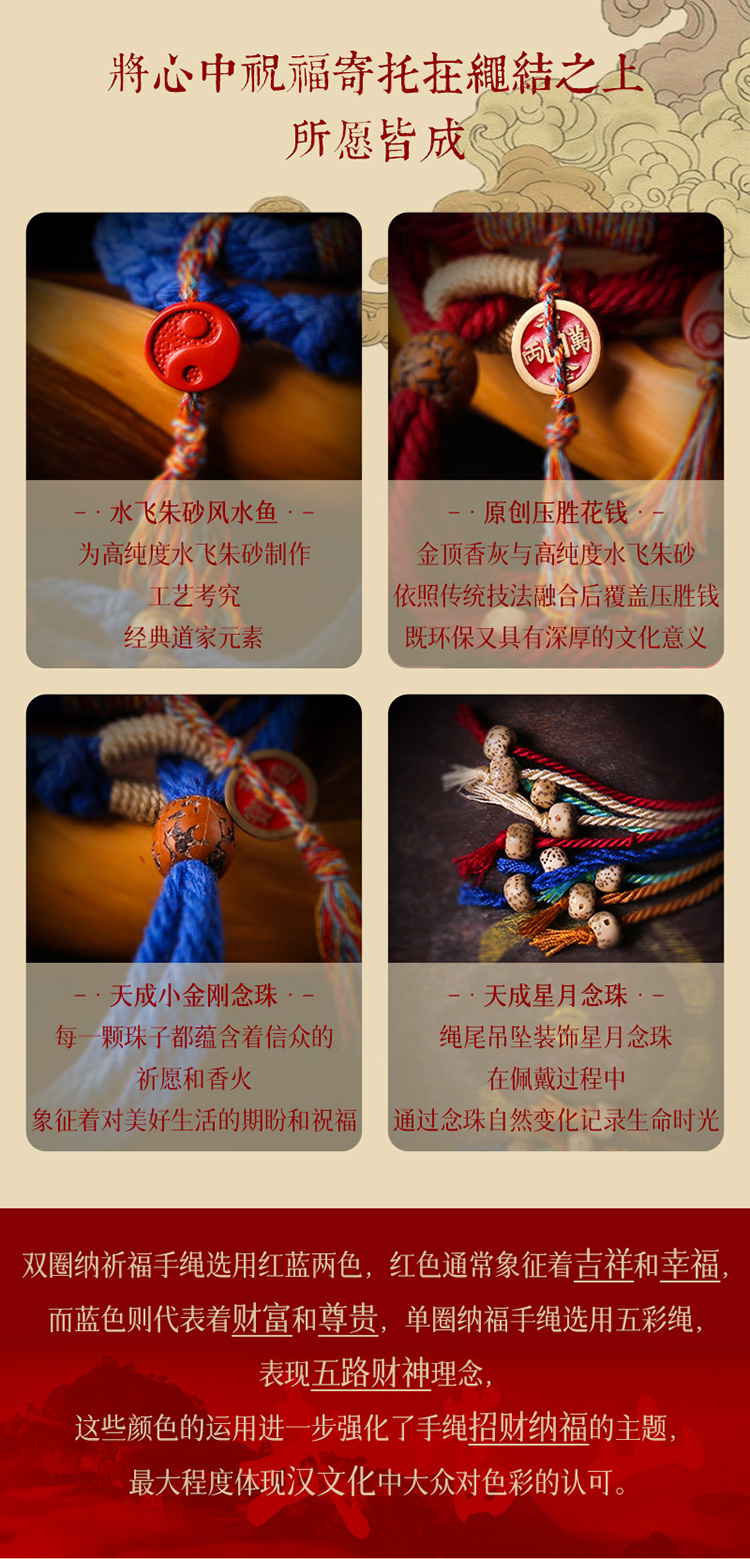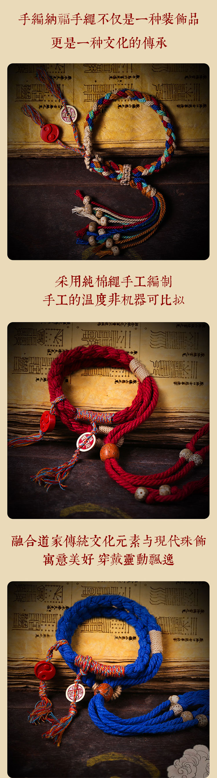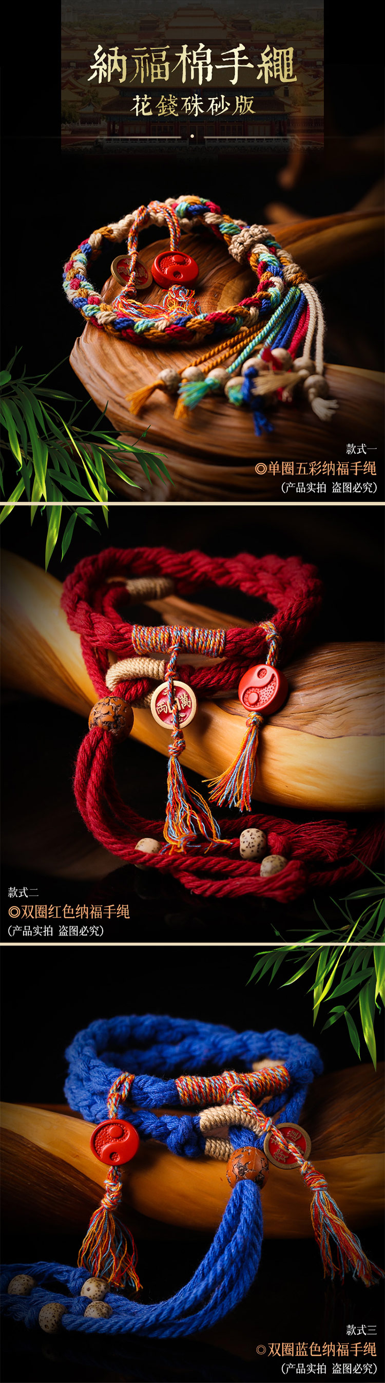 自营(浑然天成)-手工编织纳福手绳香灰朱砂压胜花钱棉绳情侣闺蜜款礼物可调节