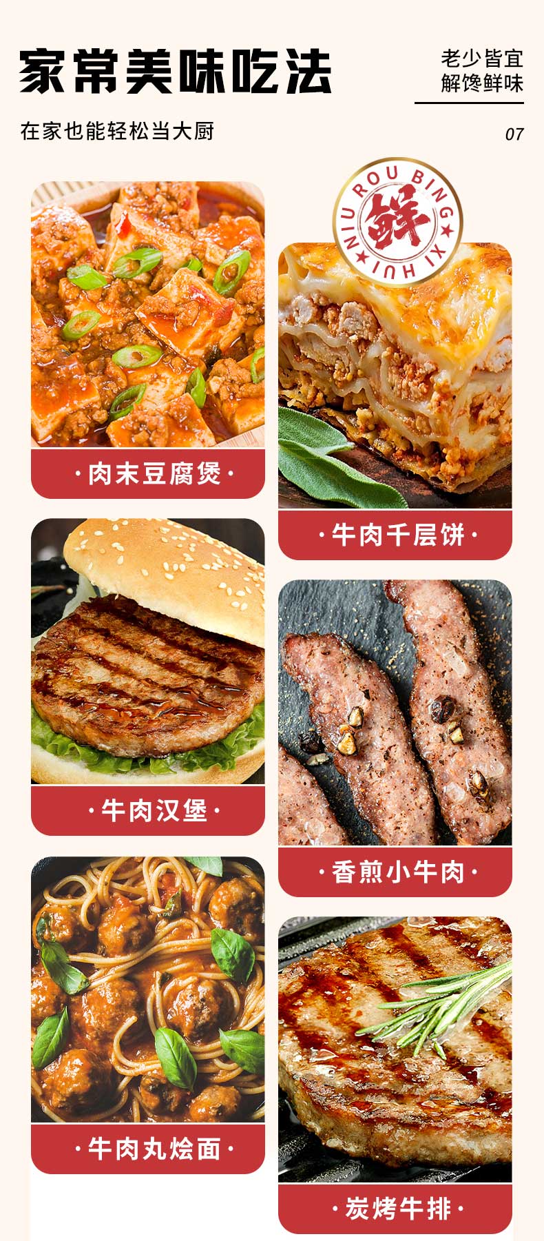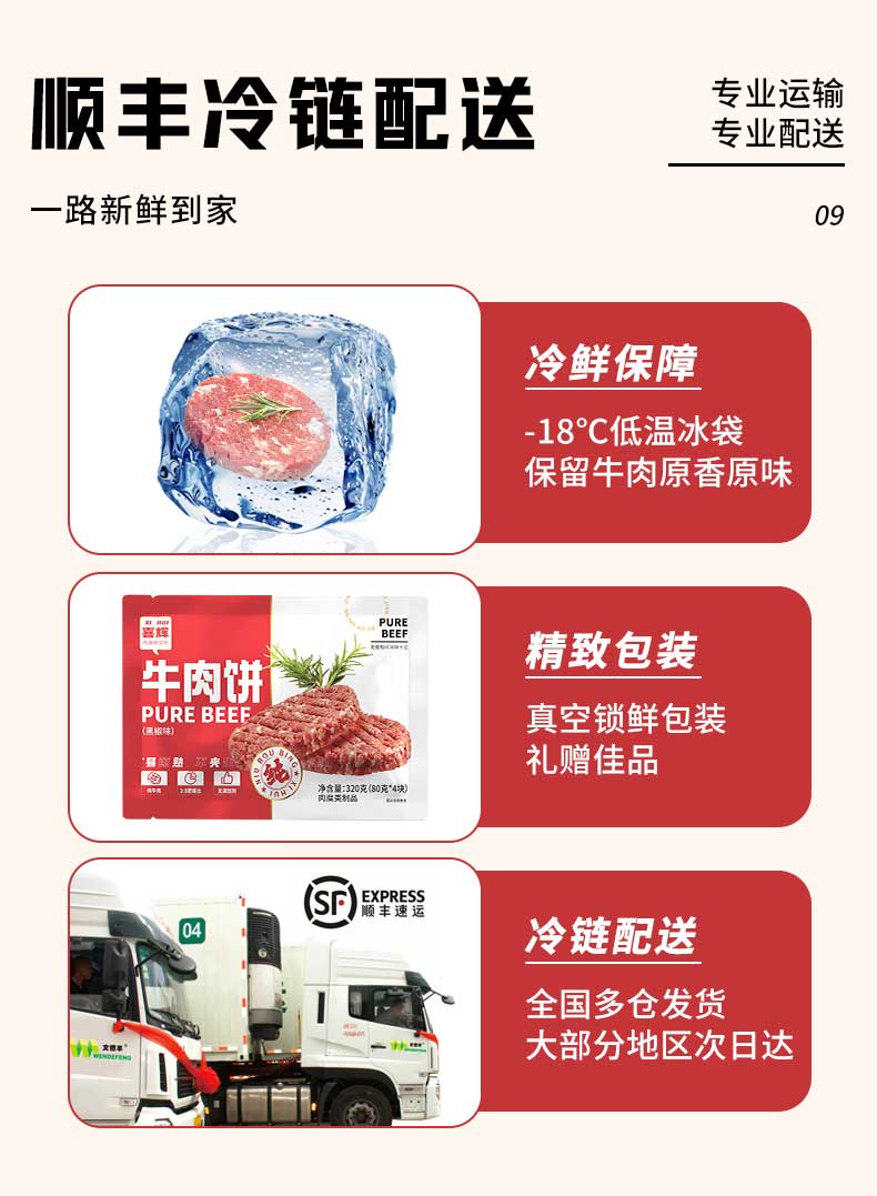 喜辉|安格斯牛肉饼/黑胡椒味半成品汉堡早餐/家用无淀粉纯牛肉冷链配送