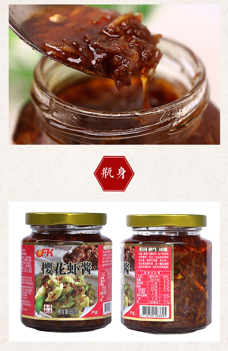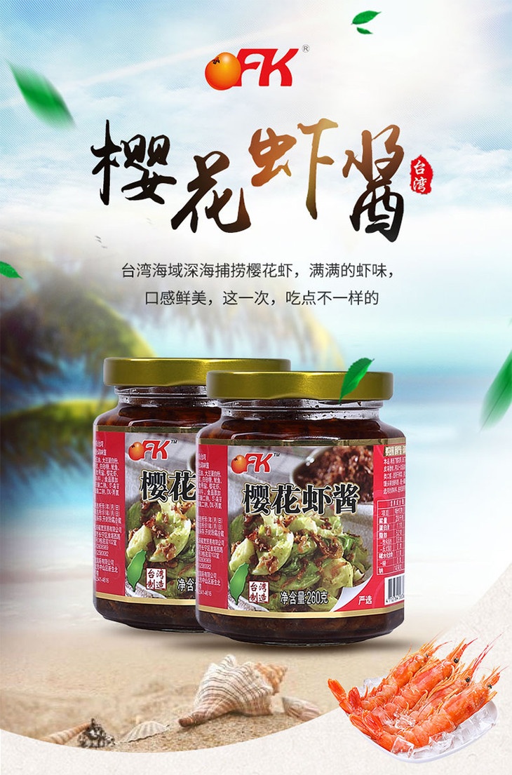 OFK台湾进口樱花虾酱虾子海鲜酱拌饭酱虾仔260g/瓶