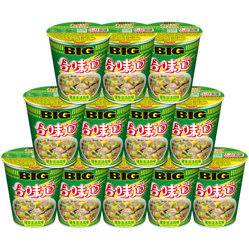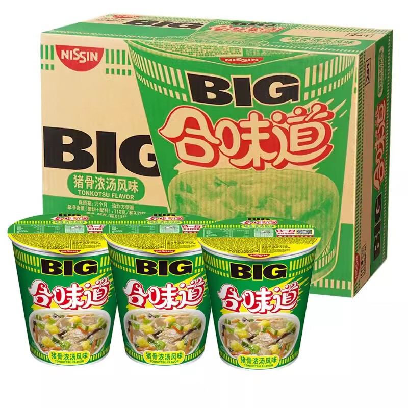 日清方便面 BIG合味道猪骨浓汤风味110g*12杯整箱装大杯日清面