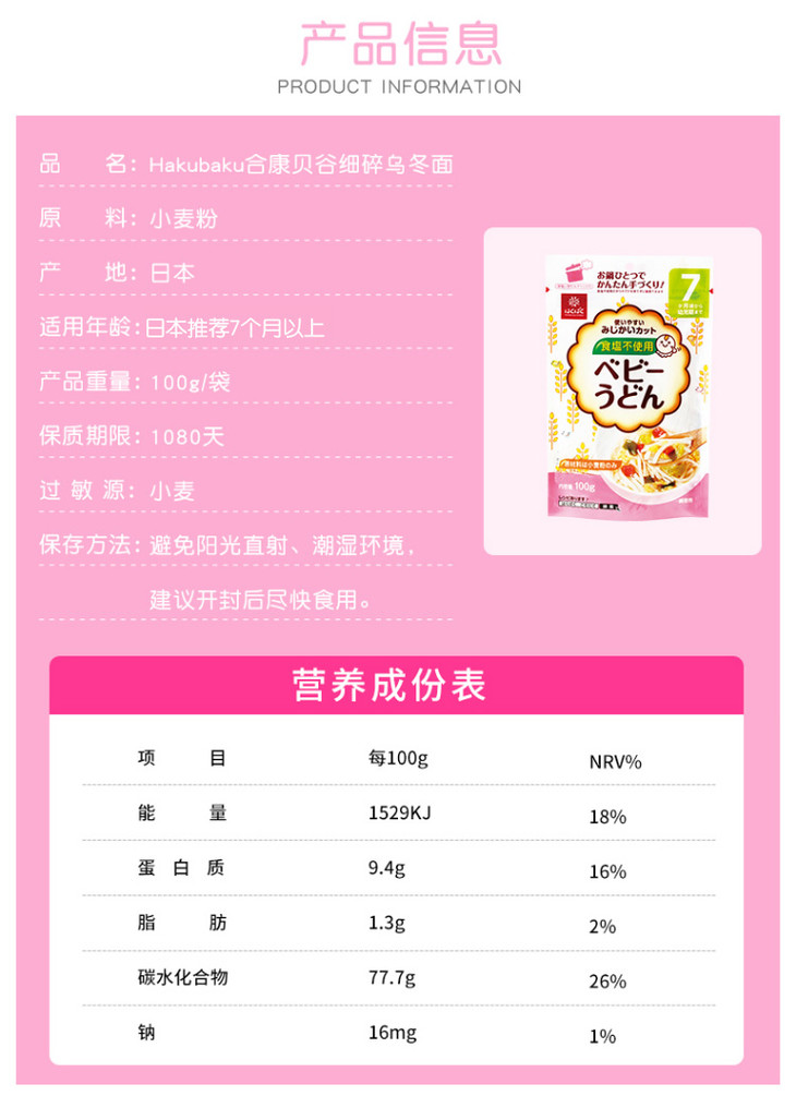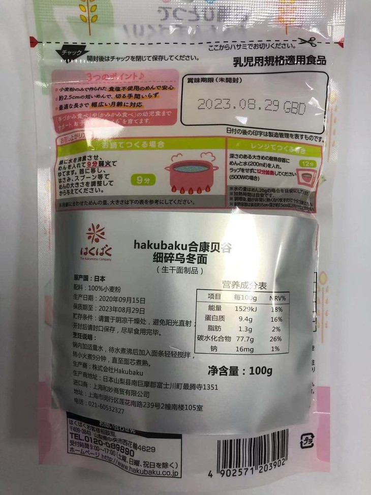 Hakubaku合康贝谷(黄金大地)细碎乌冬面100克/包