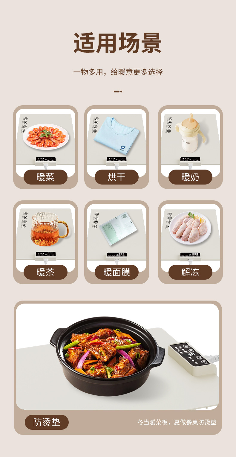 【智能硅胶暖菜板】家用冬季暖菜垫 新款多功能饭菜加热餐桌保温板