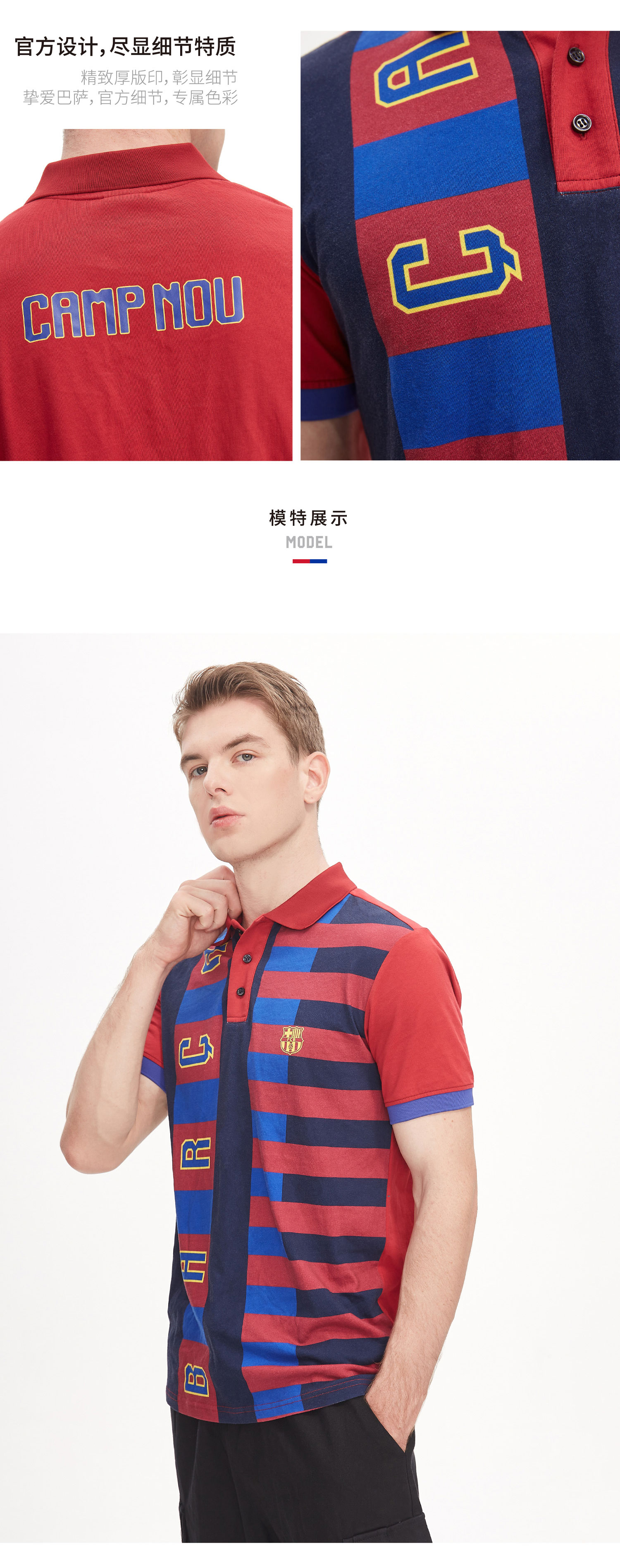 巴塞罗那俱乐部商品 | 巴萨足球服运动T恤Polo短袖条纹撞色翻领