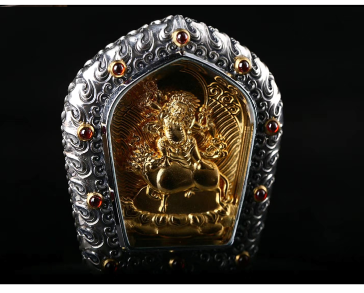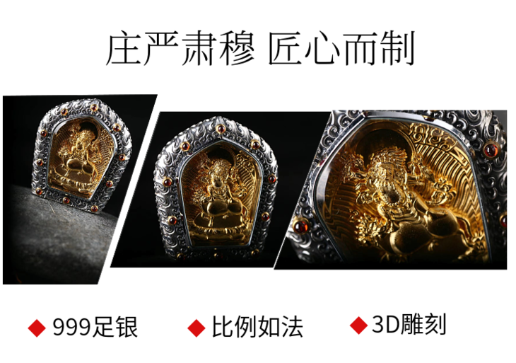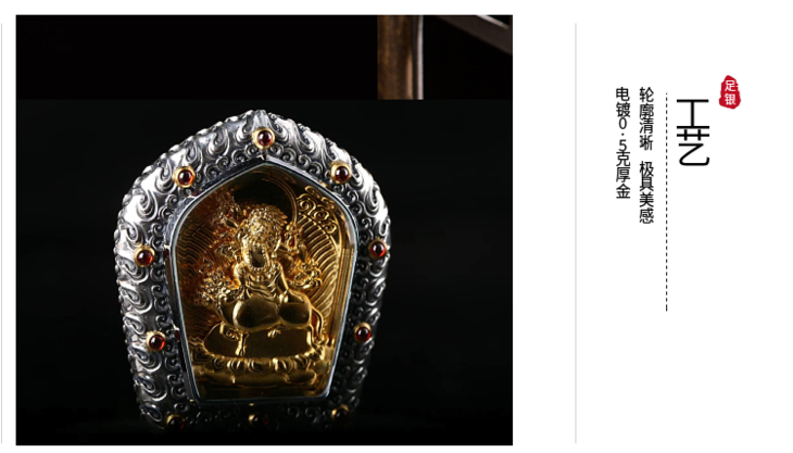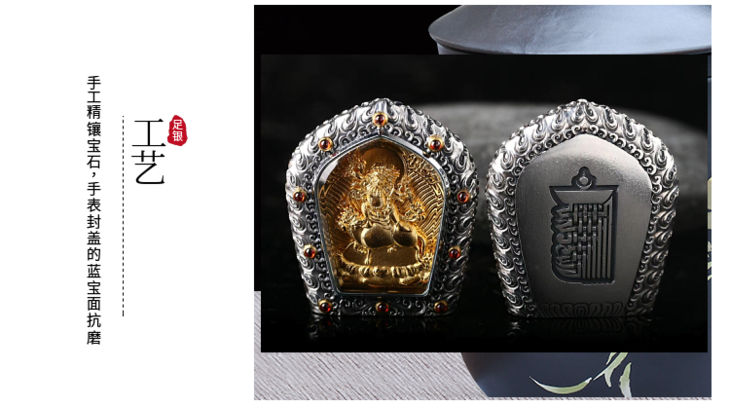 忿怒莲师 金刚铠甲 足银电镀纯金佛牌吊坠 原创设计