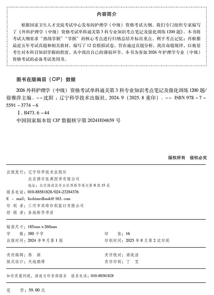 2026外科护理学(中级)资格考试单科通关第3科专业知识考点笔记及强化训练1200题 徐雅萍 主编 9787559137746辽宁科学技术出版社