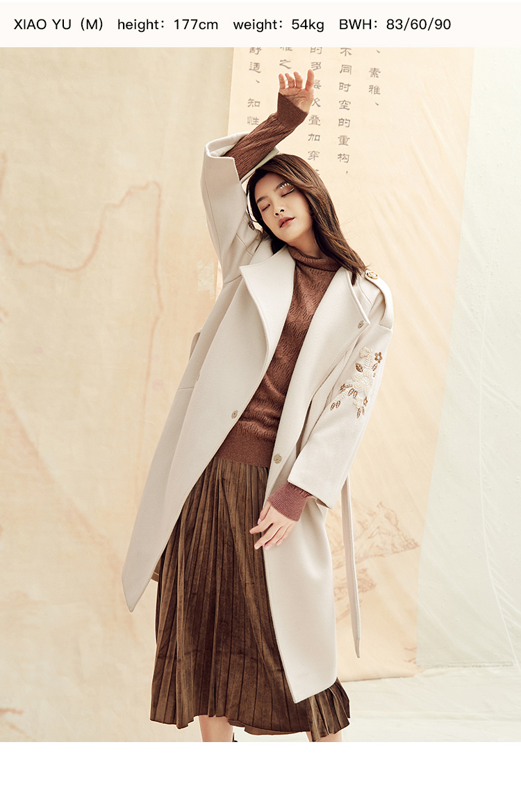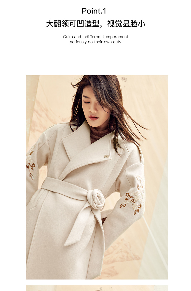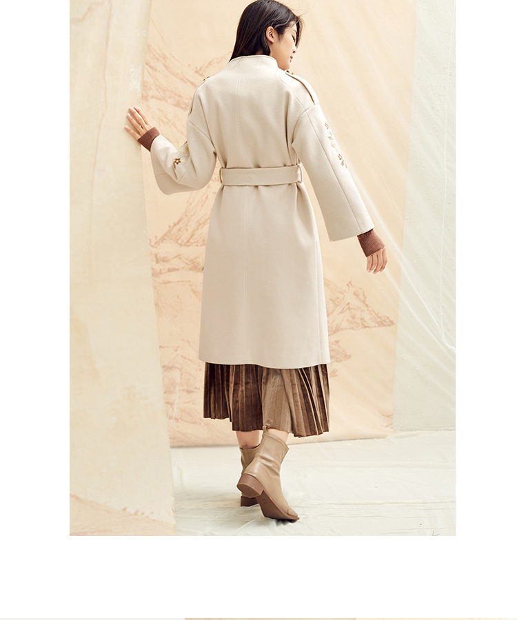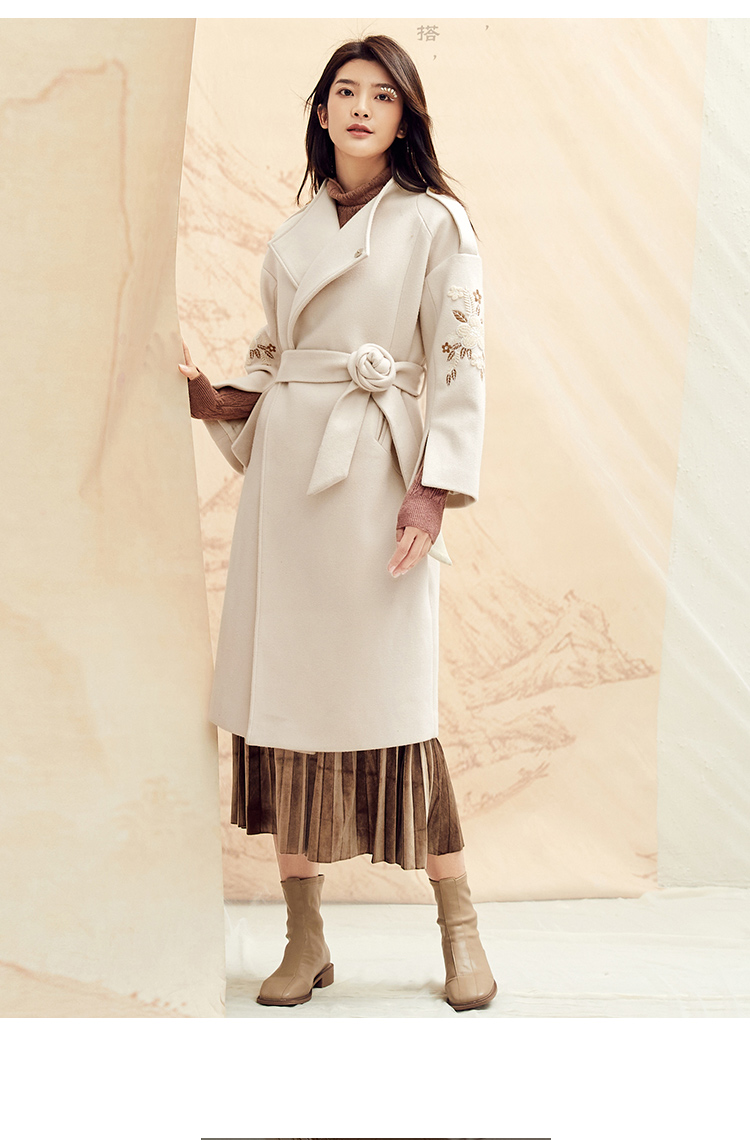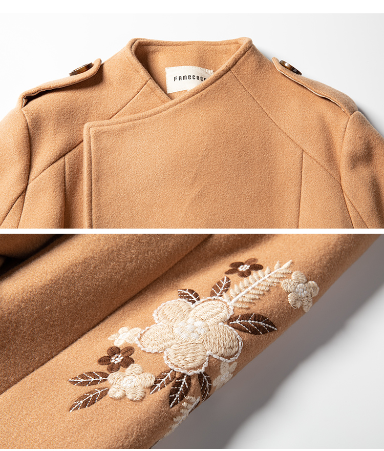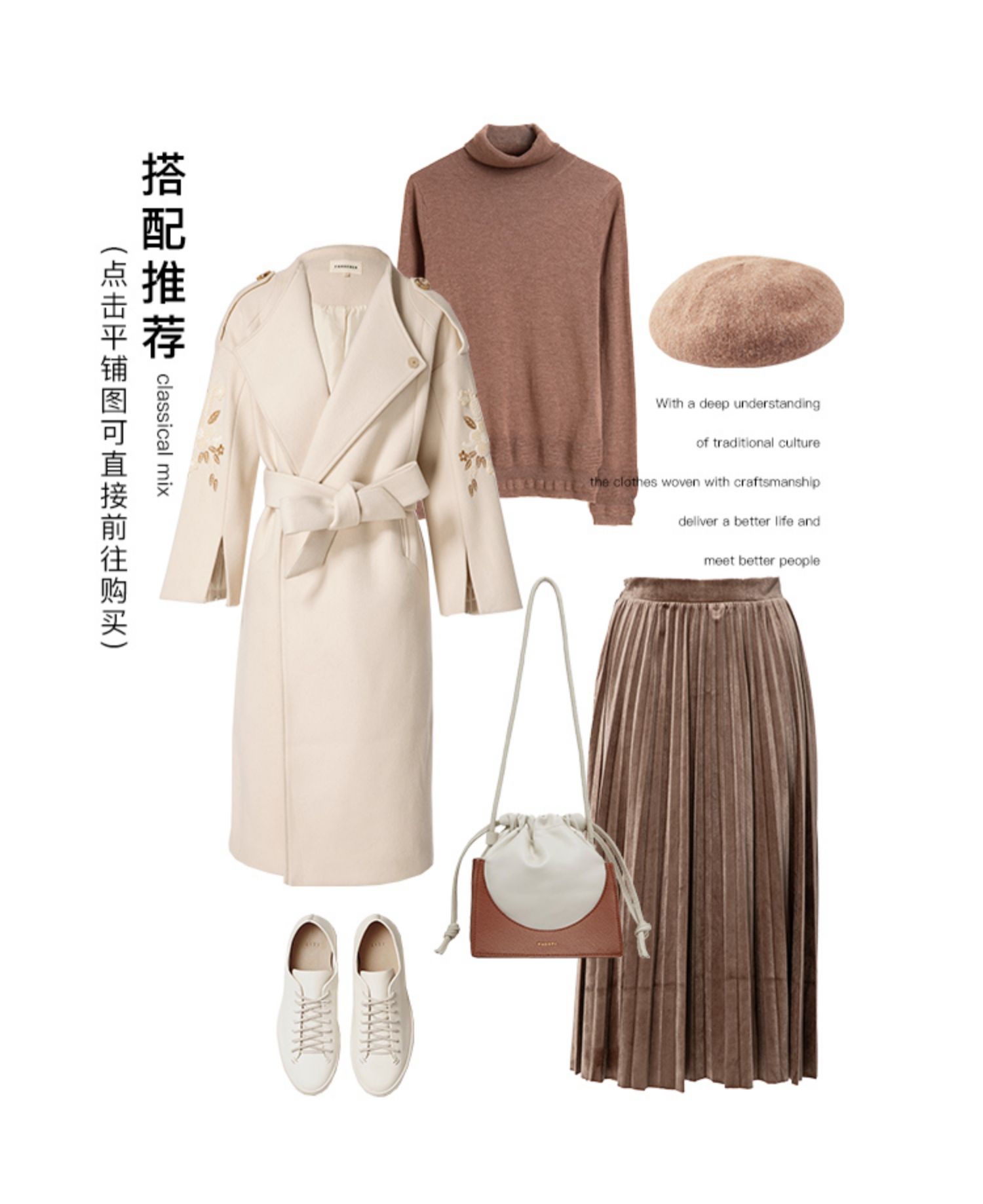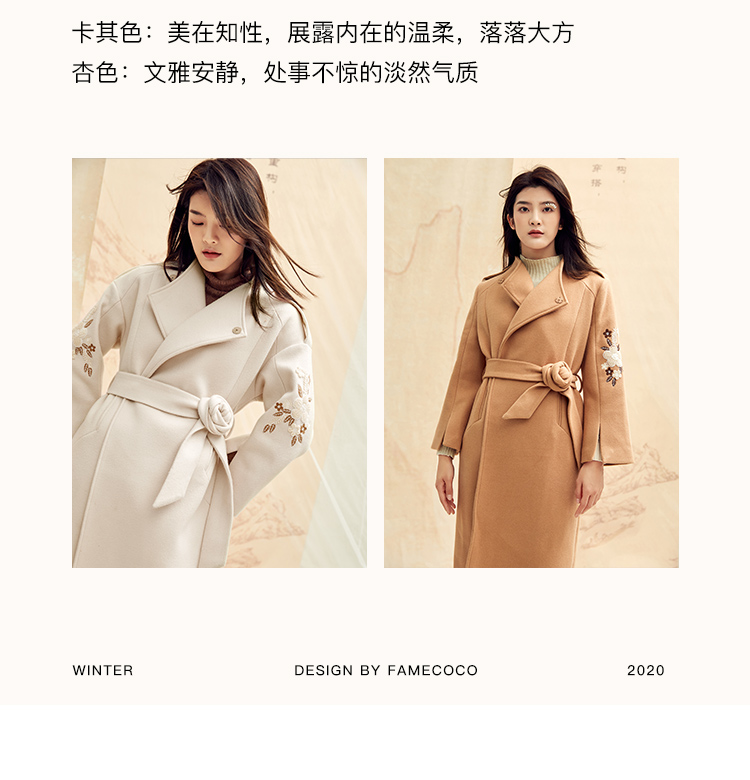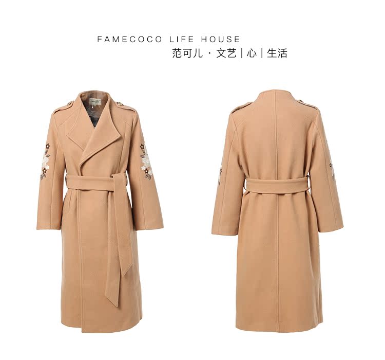 Famecoco范可儿范可儿赫本风羊毛大衣长款女轻熟收腰呢子外套F188AC030