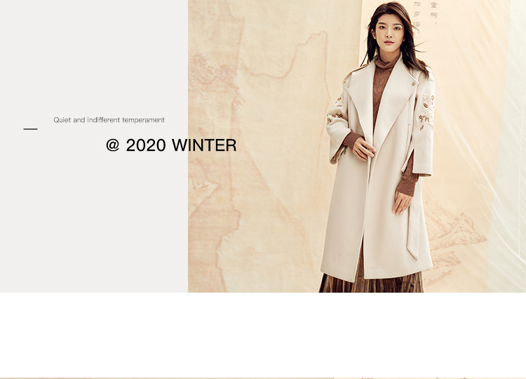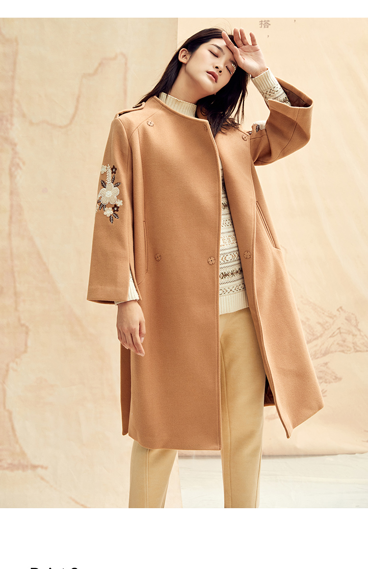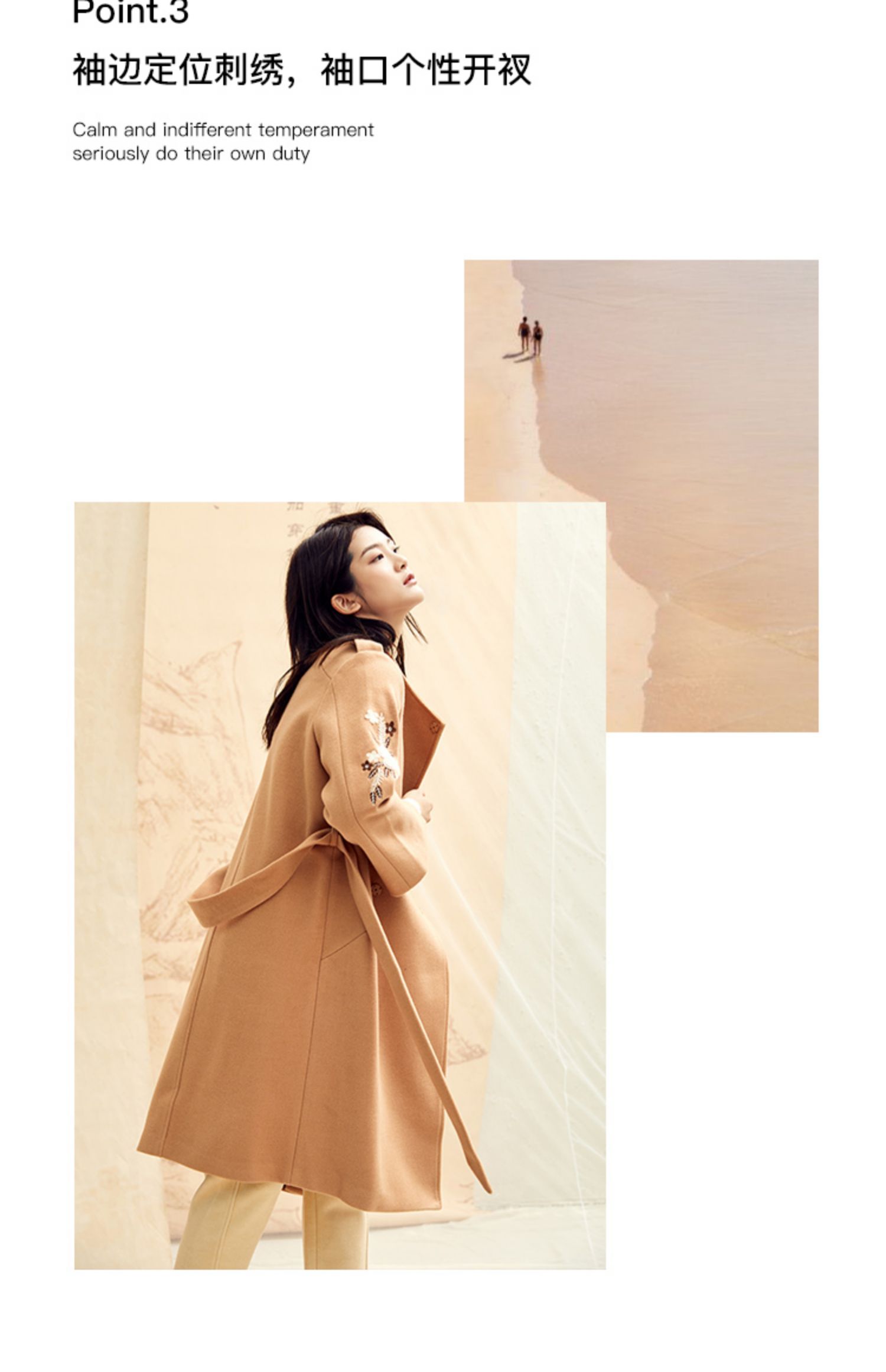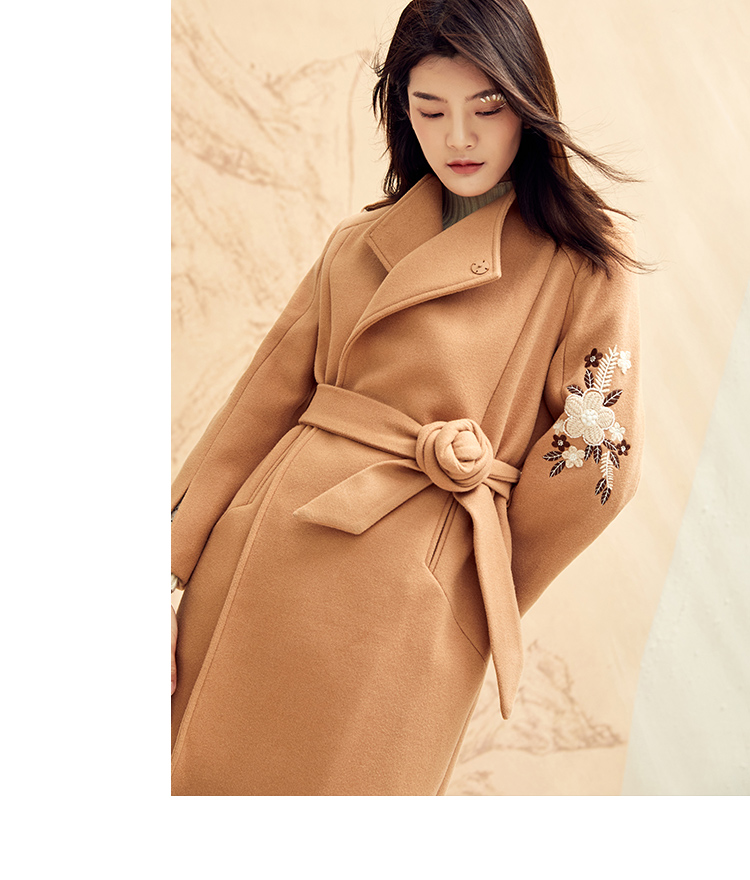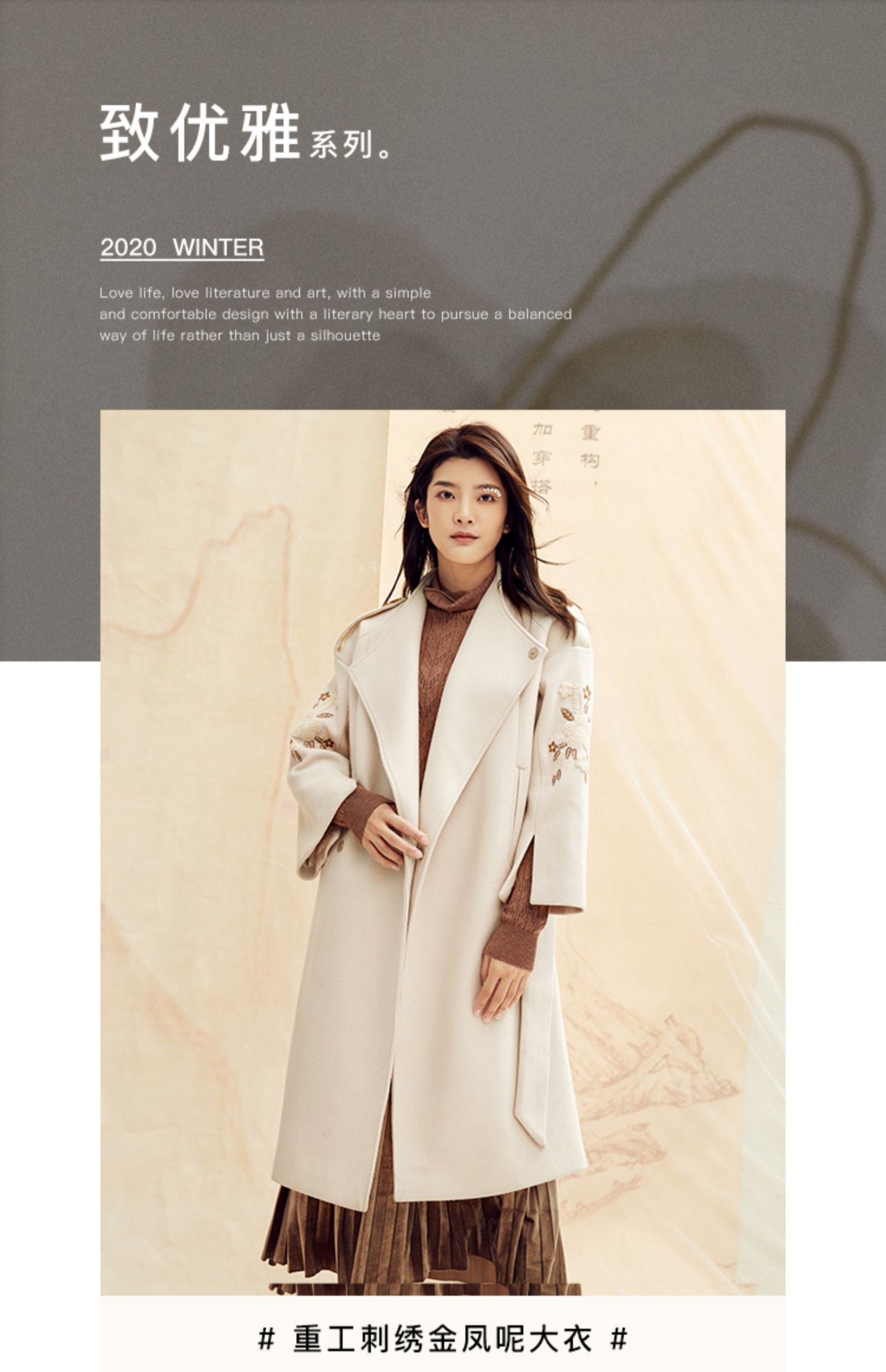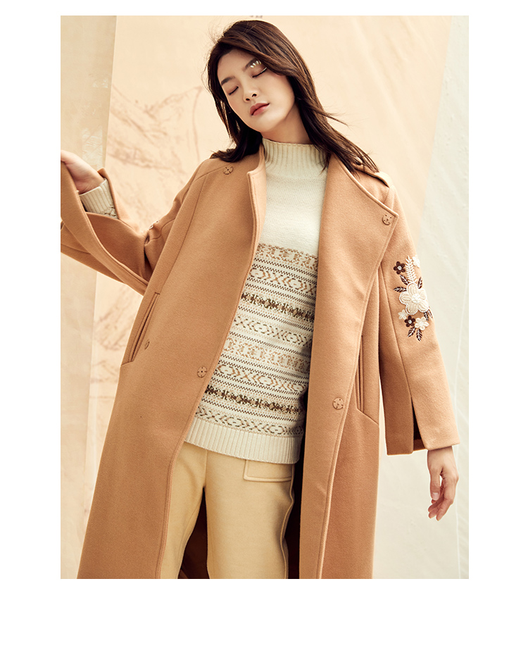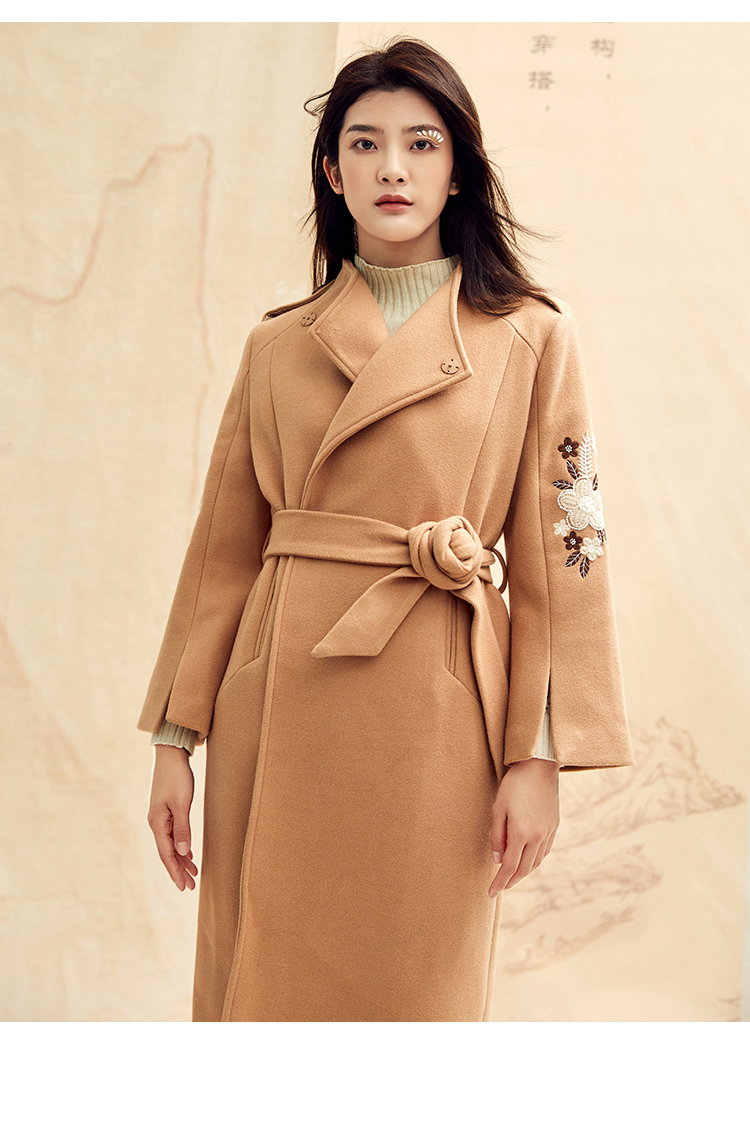 Famecoco范可儿范可儿赫本风羊毛大衣长款女轻熟收腰呢子外套F188AC030