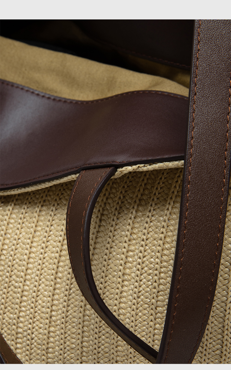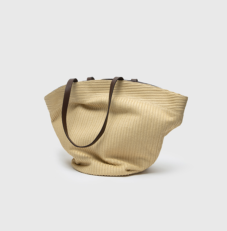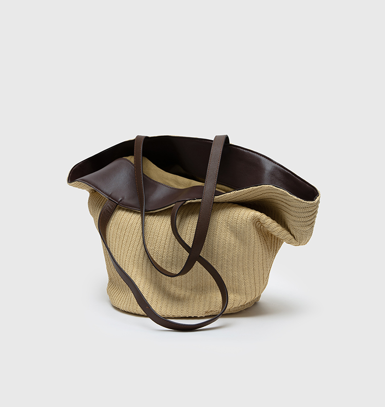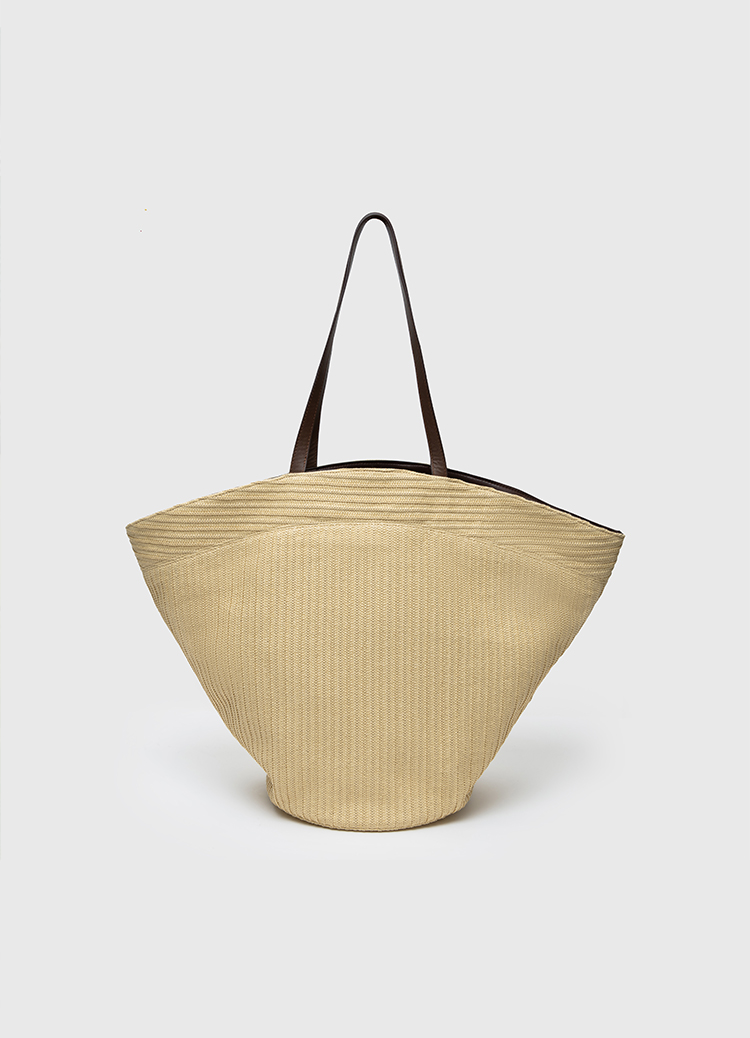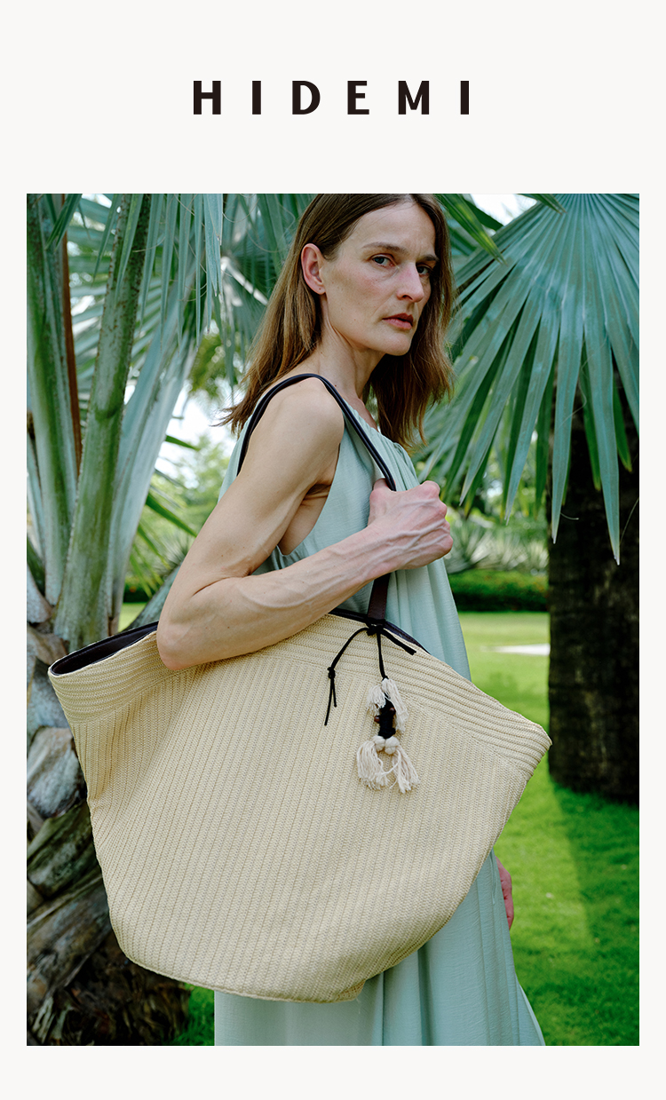 HIDEMI度假系列草编拼皮VASE TOTE艺术感花瓶手提肩背多用式托特包