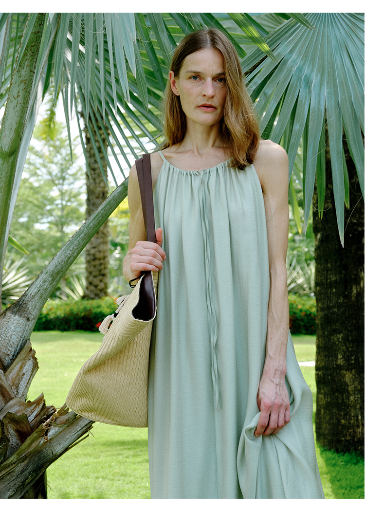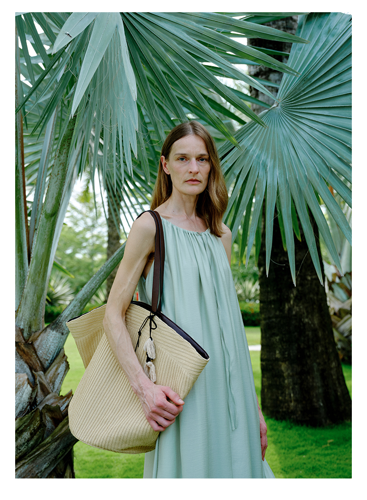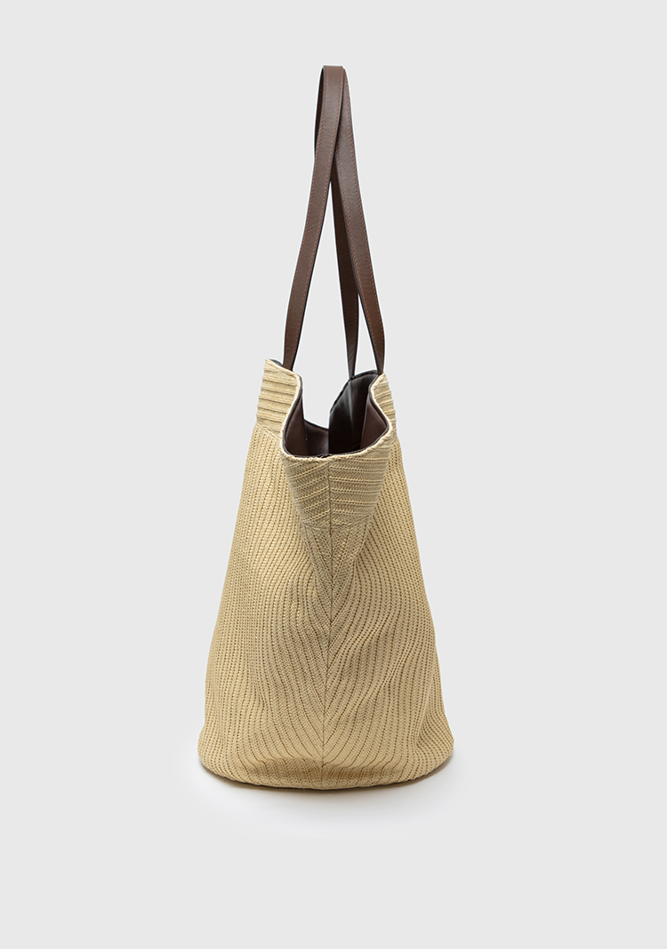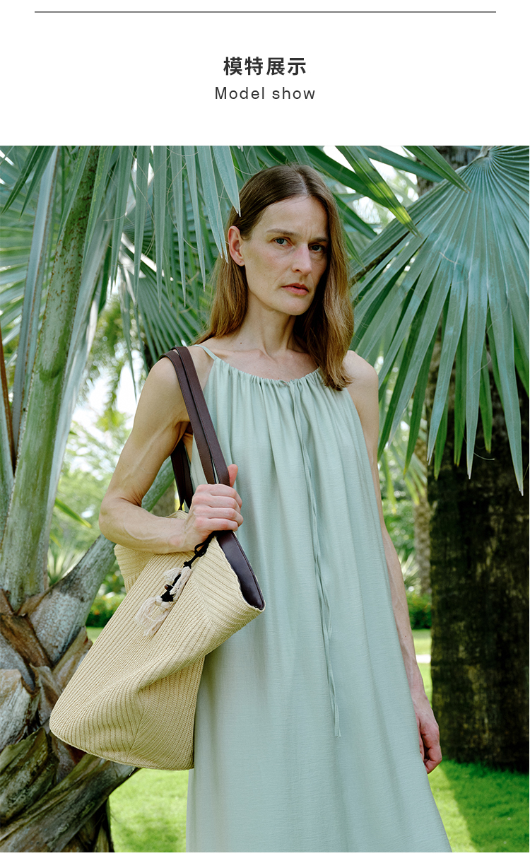 HIDEMI度假系列草编拼皮VASE TOTE艺术感花瓶手提肩背多用式托特包