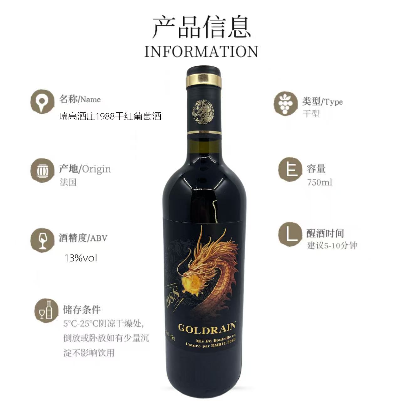 法国瑞高龙13度葡萄酒750ml/瓶