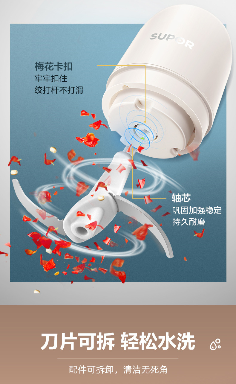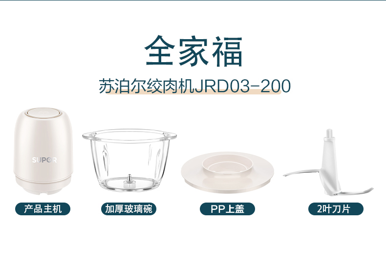 苏泊尔(SUPOR)1.2L绞肉 ZMD安心系列 8秒速绞 绞肉馅 搅蔬菜馅 搅调料 JRD03-200