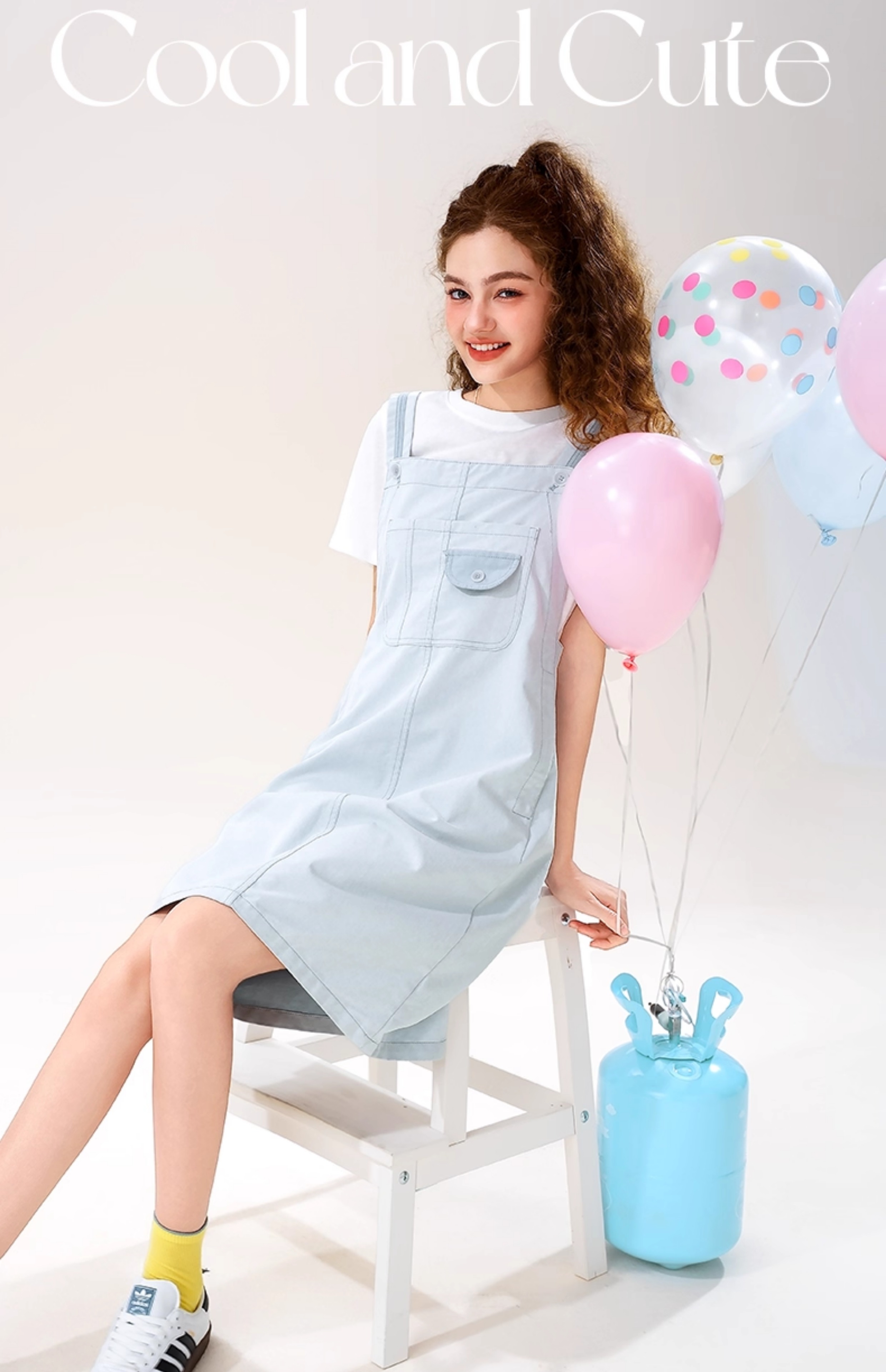 mc2彩色牛仔背带裙套装两件套女装夏季新款甜美可爱时尚洋气好看