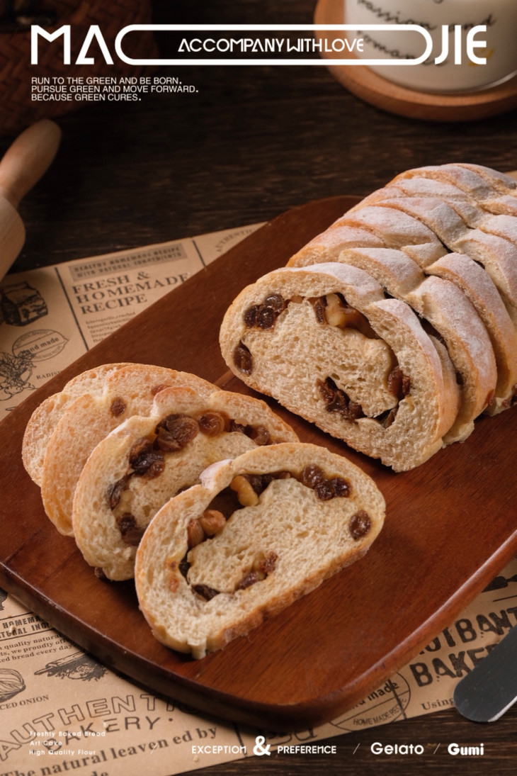 其他配料:新西兰进口奶粉、韩国幼砂糖、富硒鸡蛋、鲜酵母、饮用水、核桃仁、葡萄干