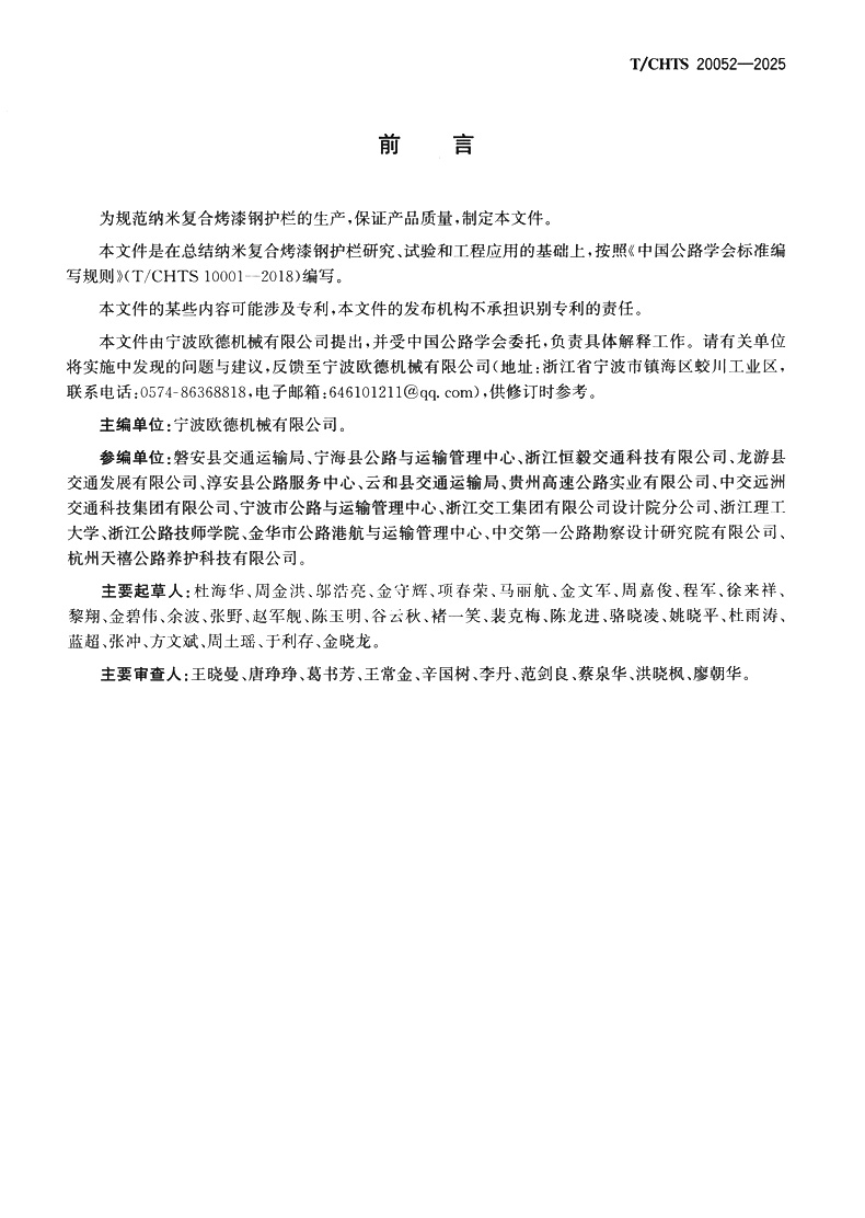 书名:纳米复合烤漆钢护栏(T/CHTS 20052—2025)