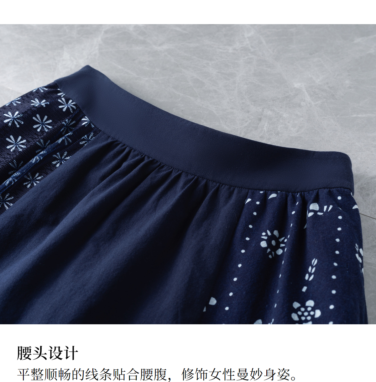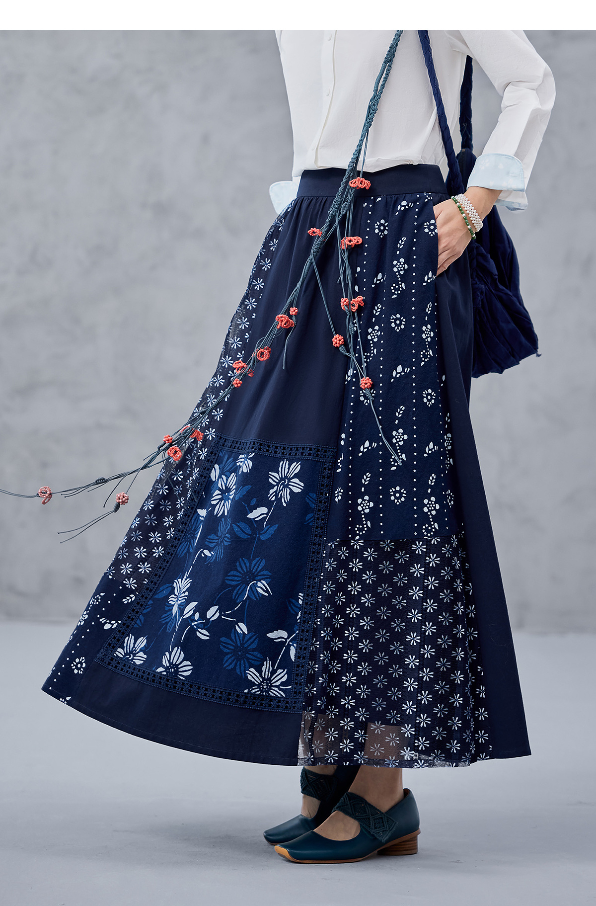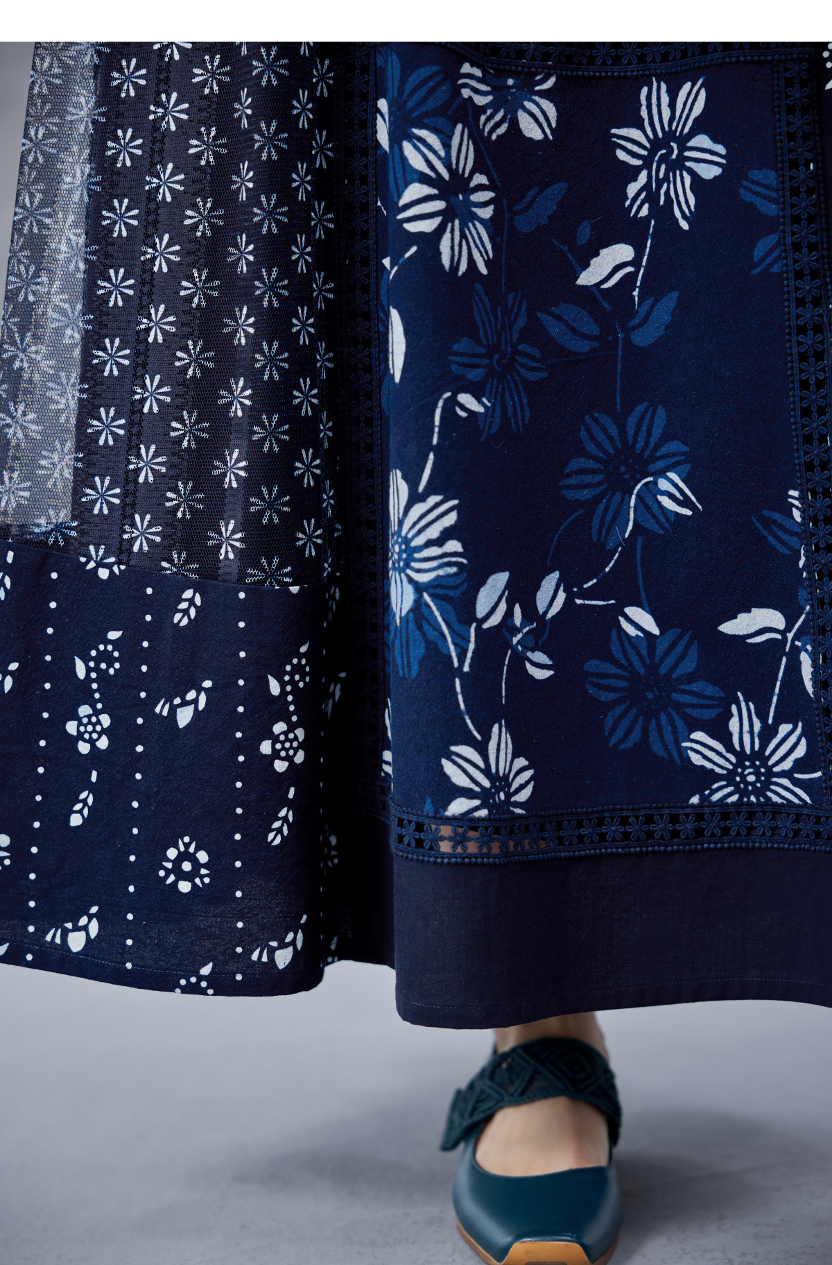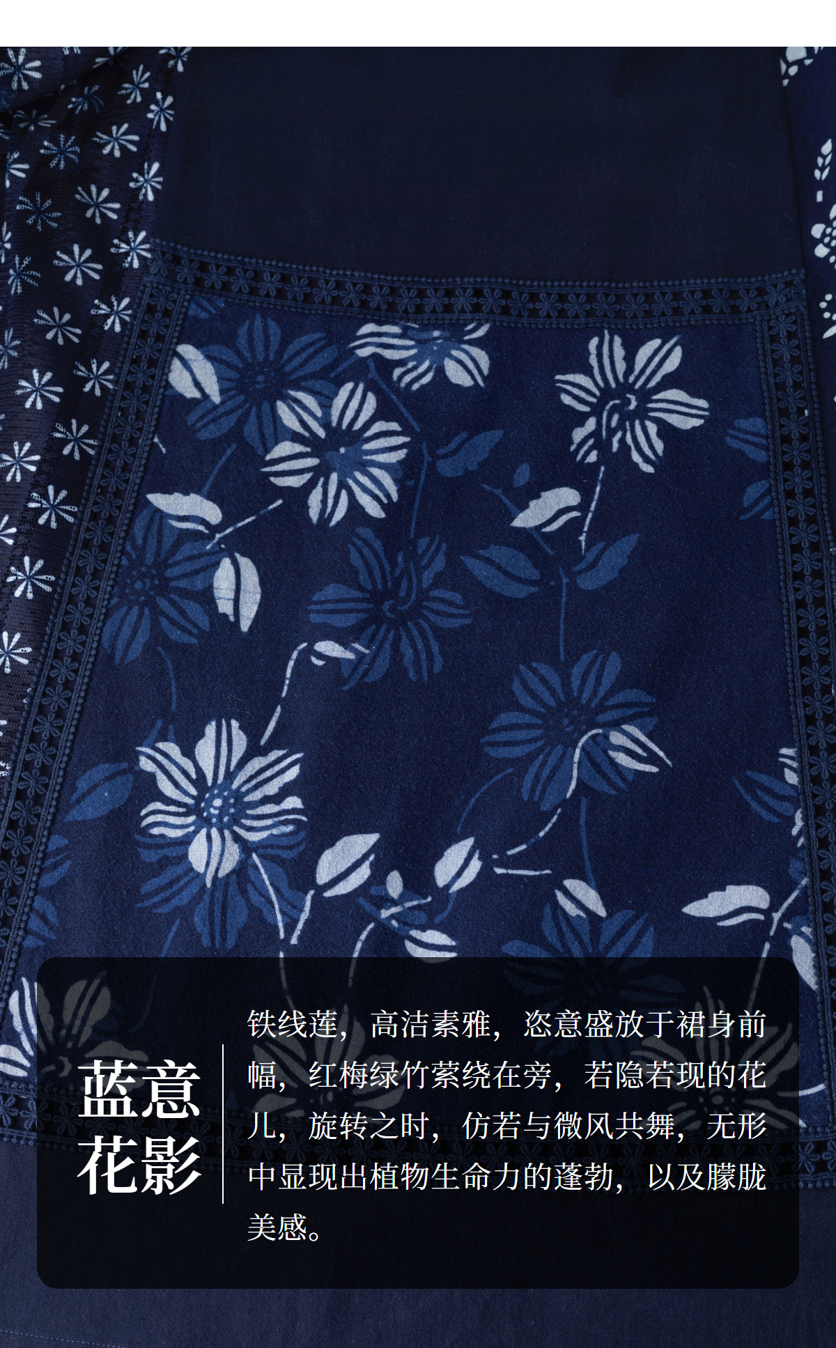 【林栖设计小店】(现货)纯棉半身裙蓝印花布铁线莲拼蕾丝花边复古2025春夏新品裙子女1952008
