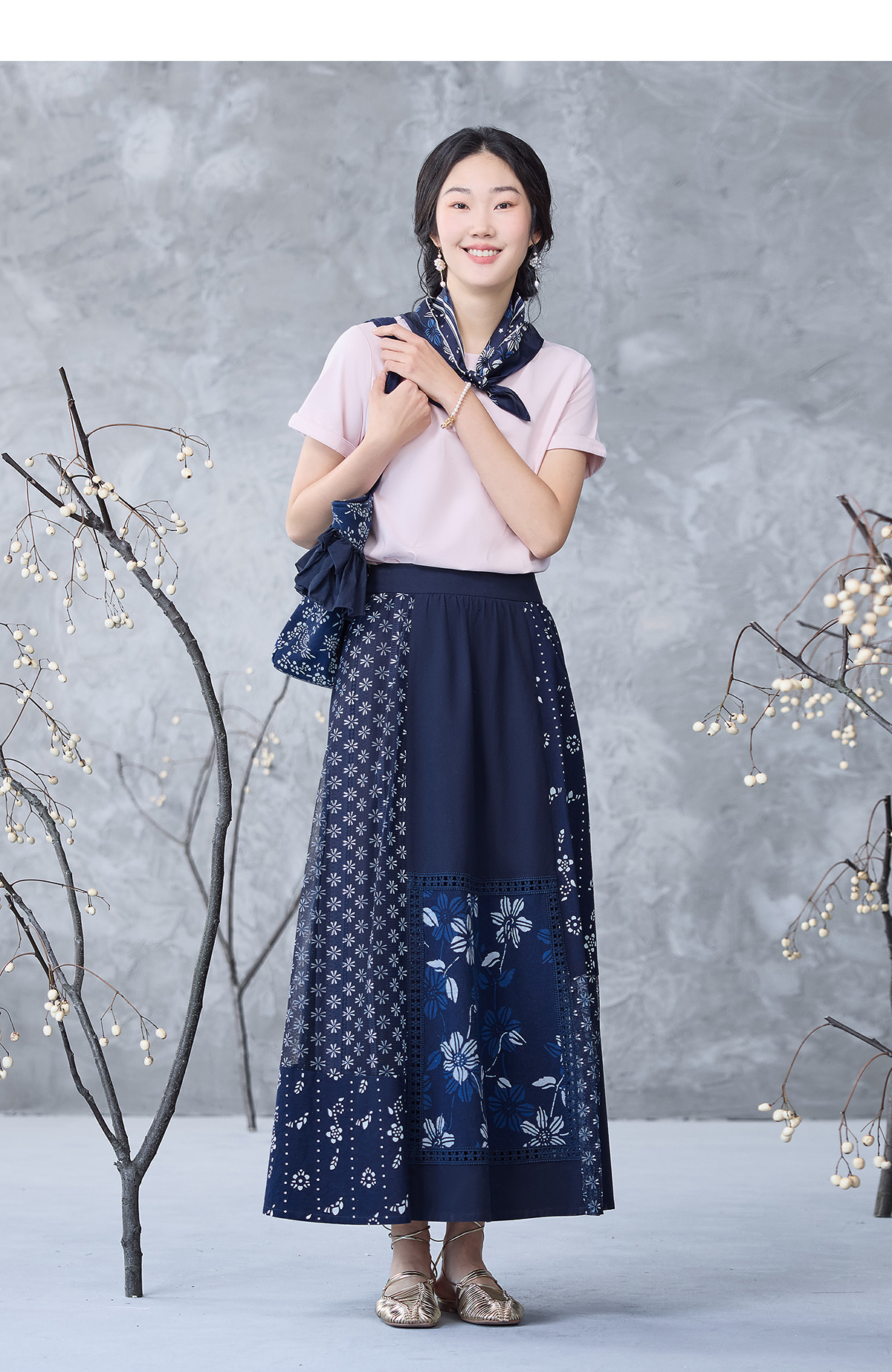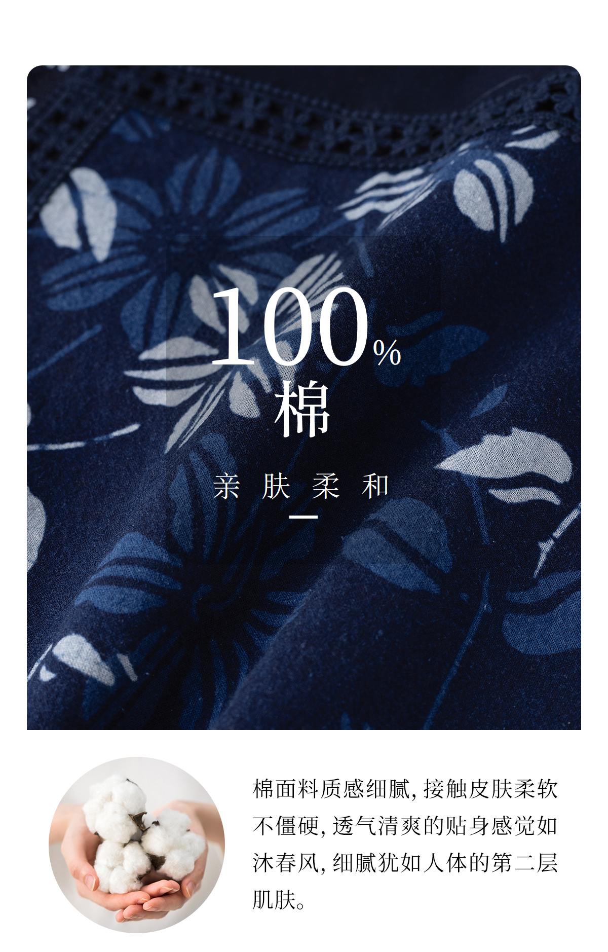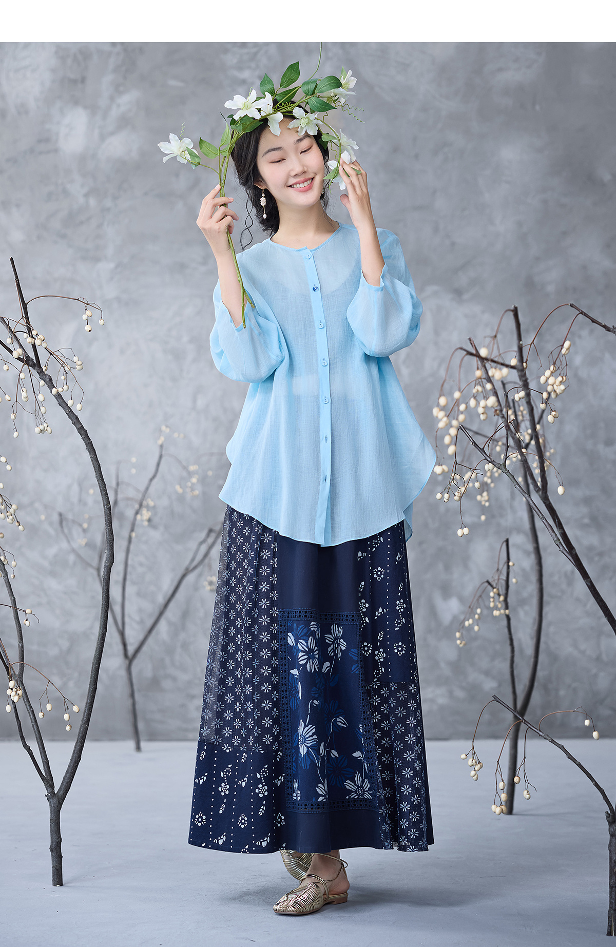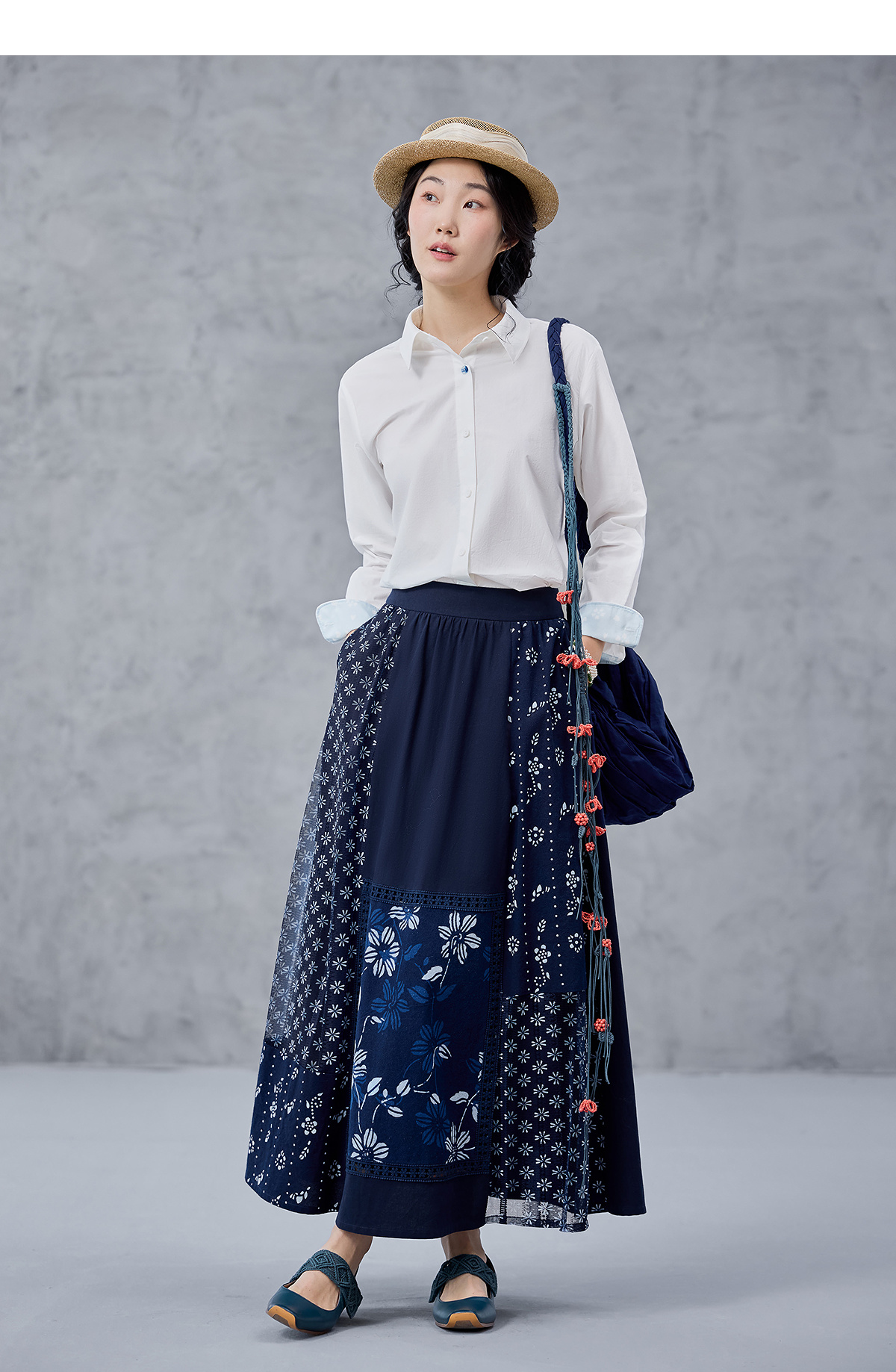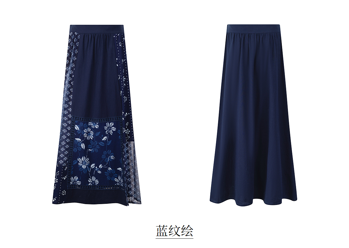 【林栖设计小店】(现货)纯棉半身裙蓝印花布铁线莲拼蕾丝花边复古2025春夏新品裙子女1952008