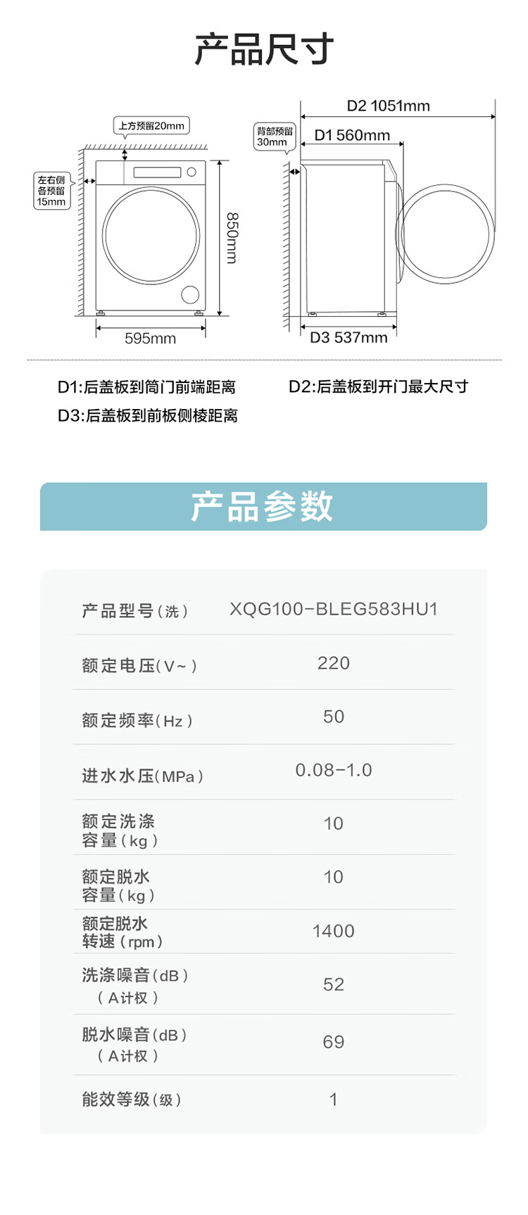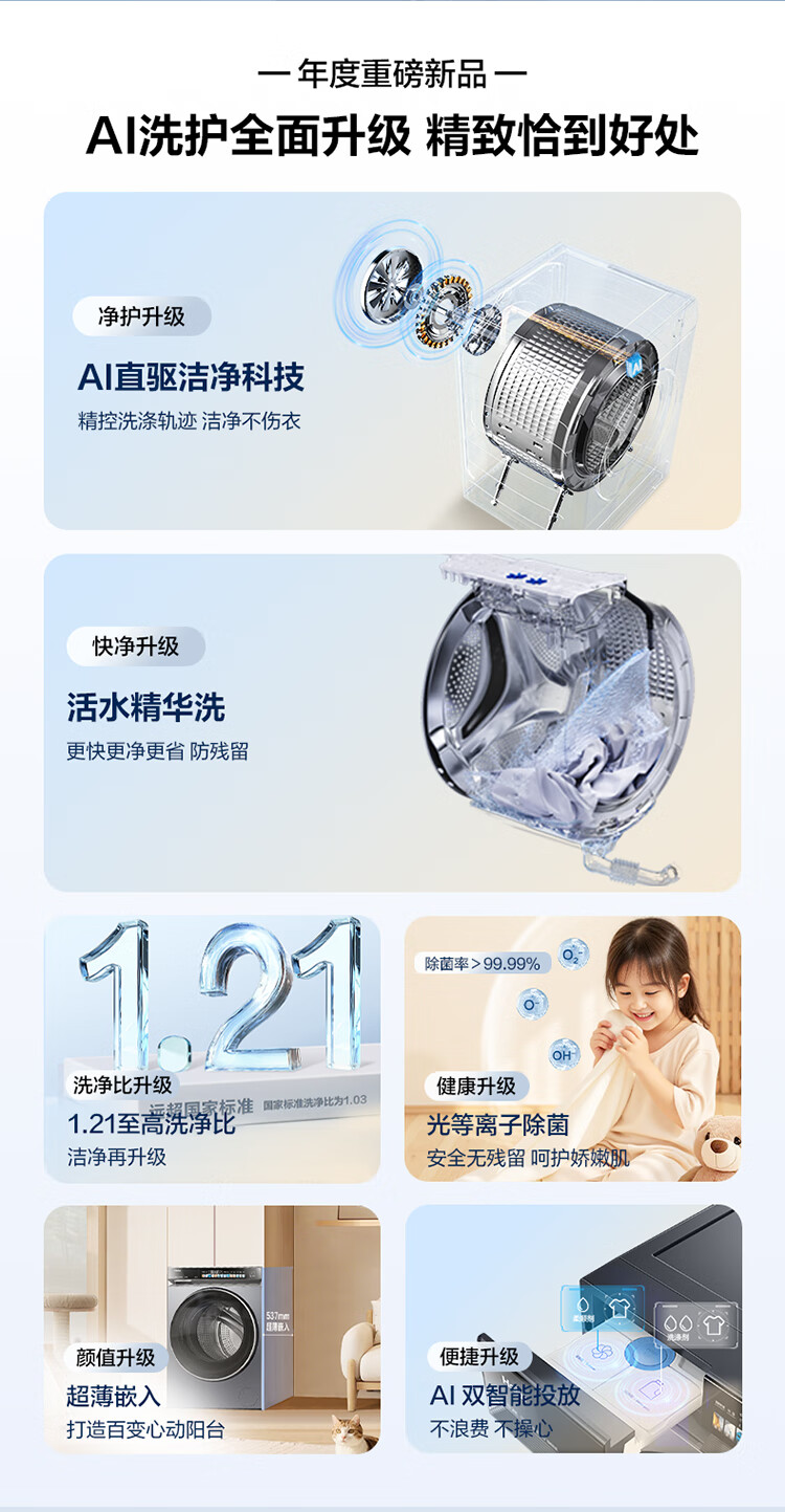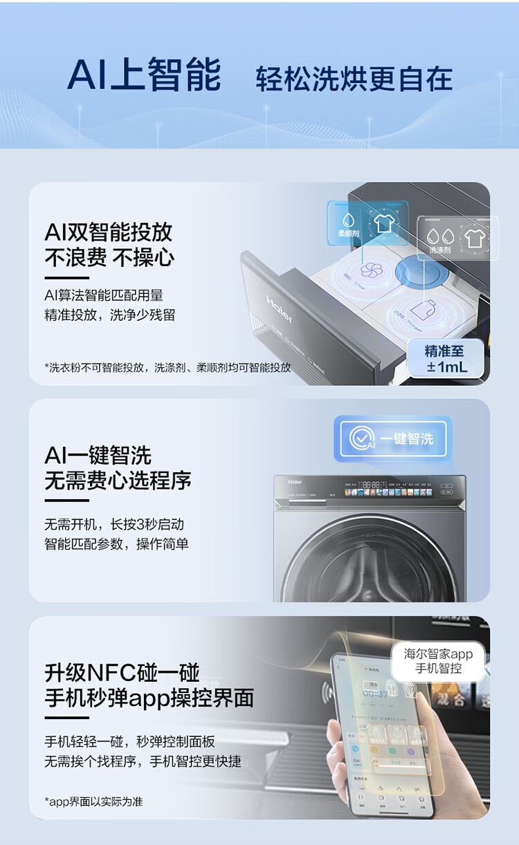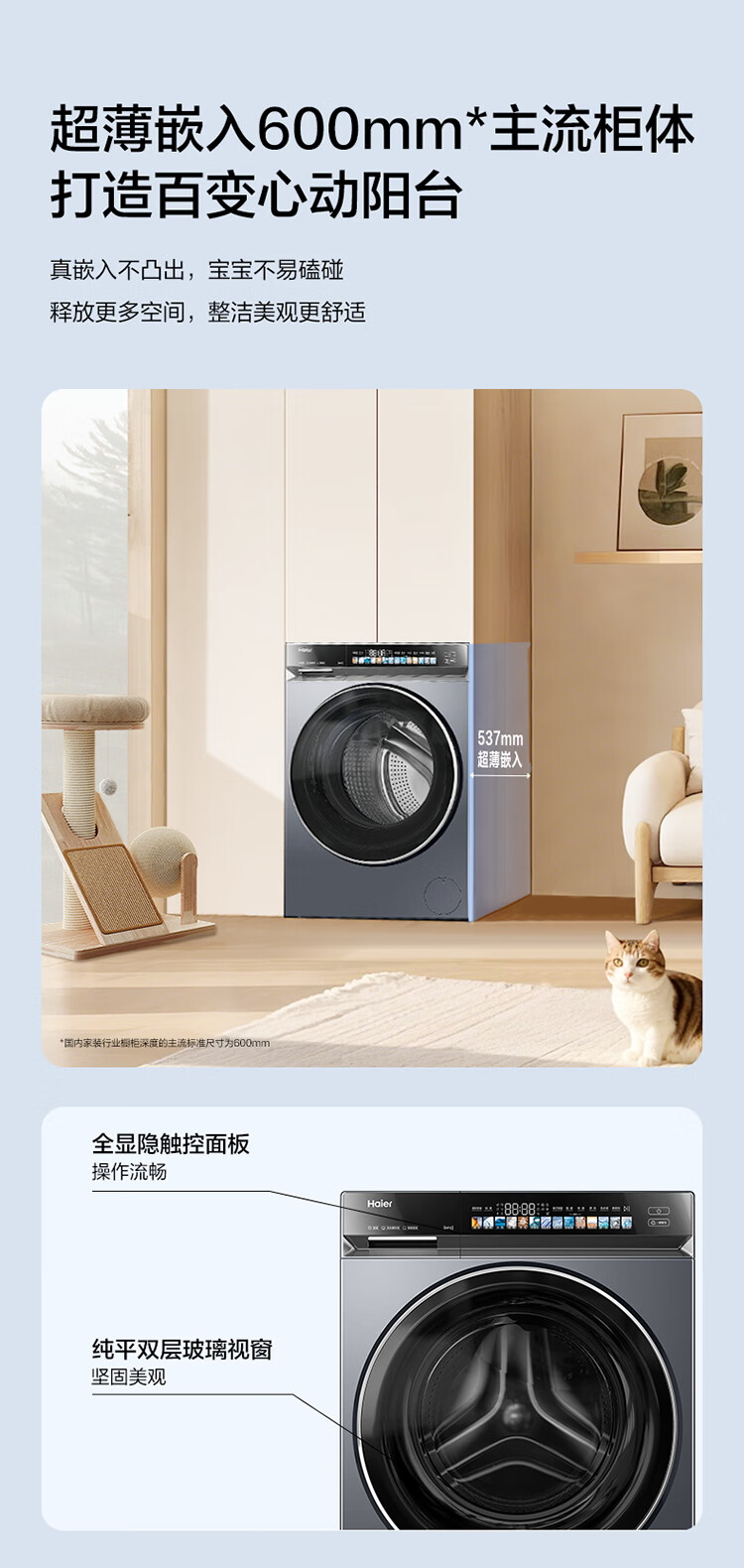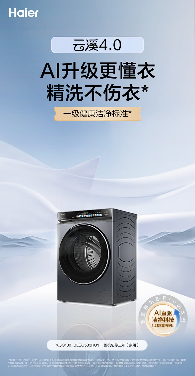 海尔(Haier)滚筒洗衣机全自动10公斤懒人家用云溪4.0家电国家补贴20%Ai直驱洁净 XQG100-BLEG583HU1