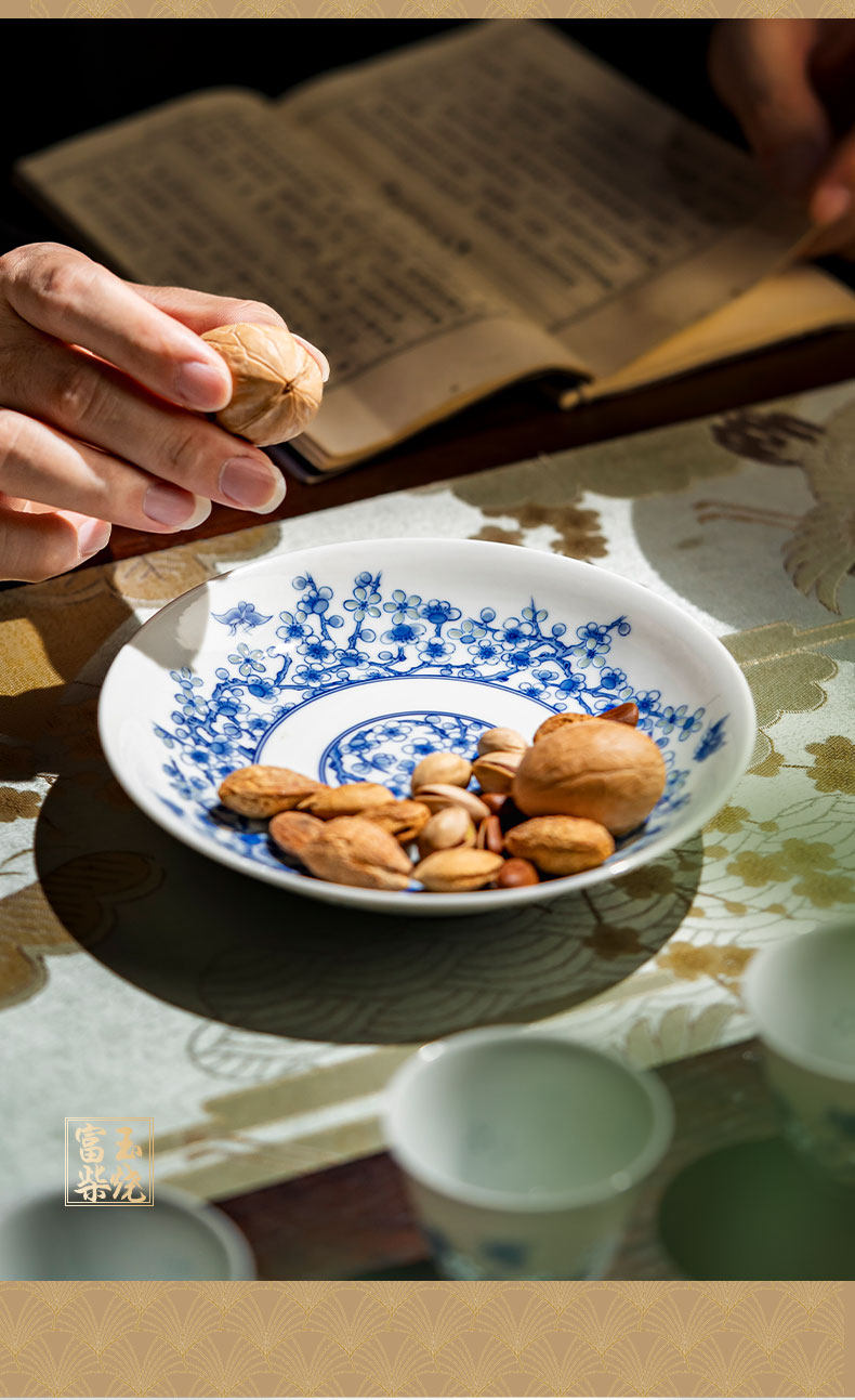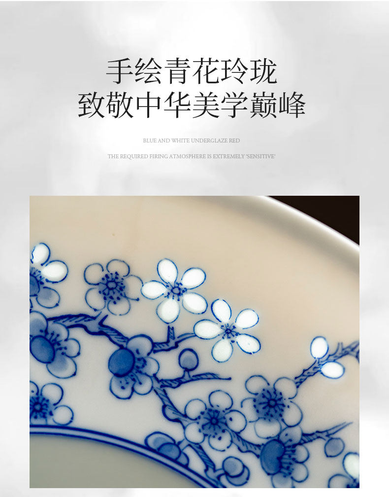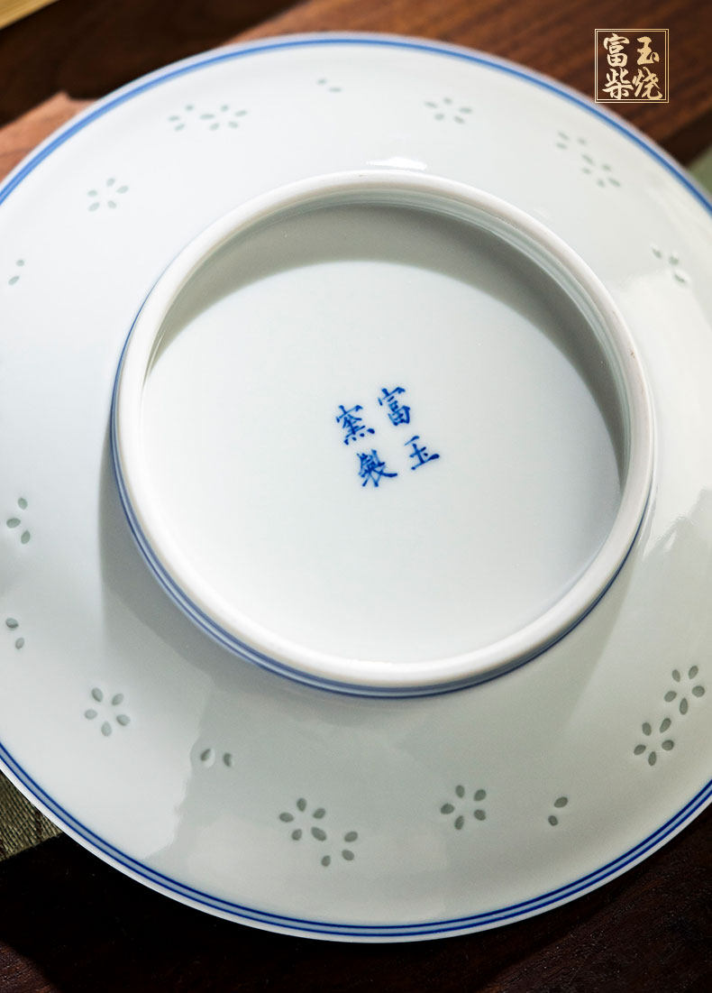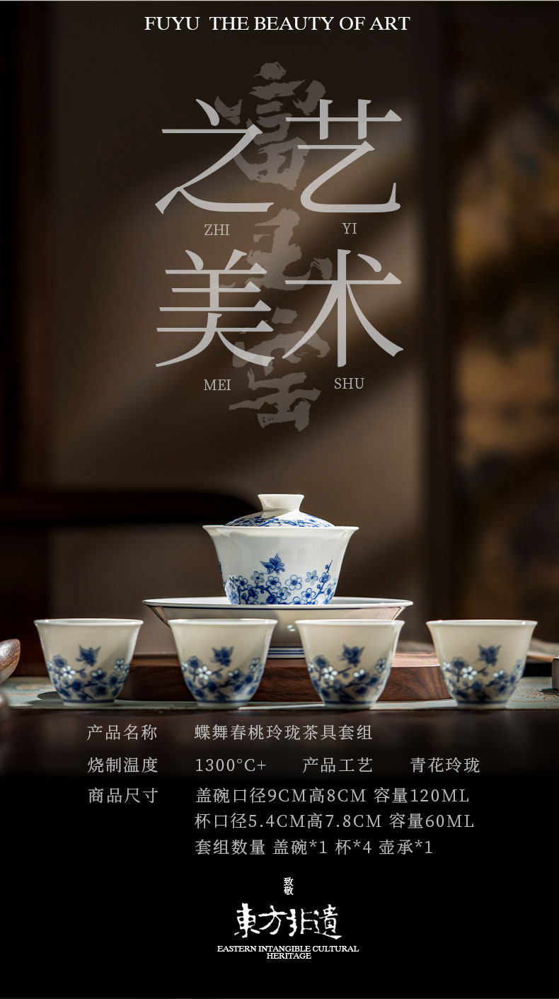 富玉窑 景德镇青花玲珑蝶舞春桃盖碗茶杯主人杯高档功夫泡茶具套装