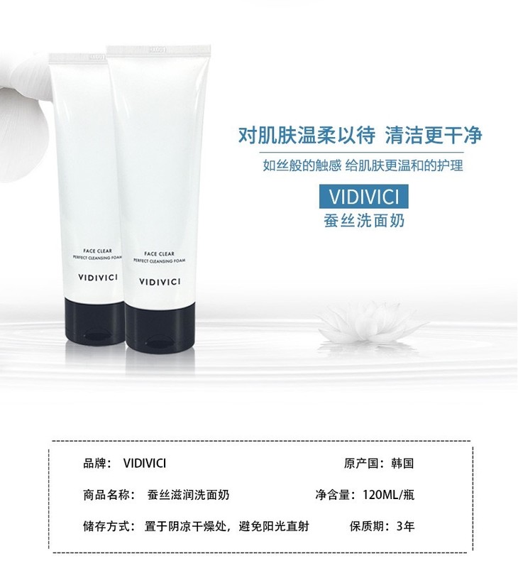 韩国 VIDIVICI 女神蚕丝泡沫温保湿洗面奶 120ml