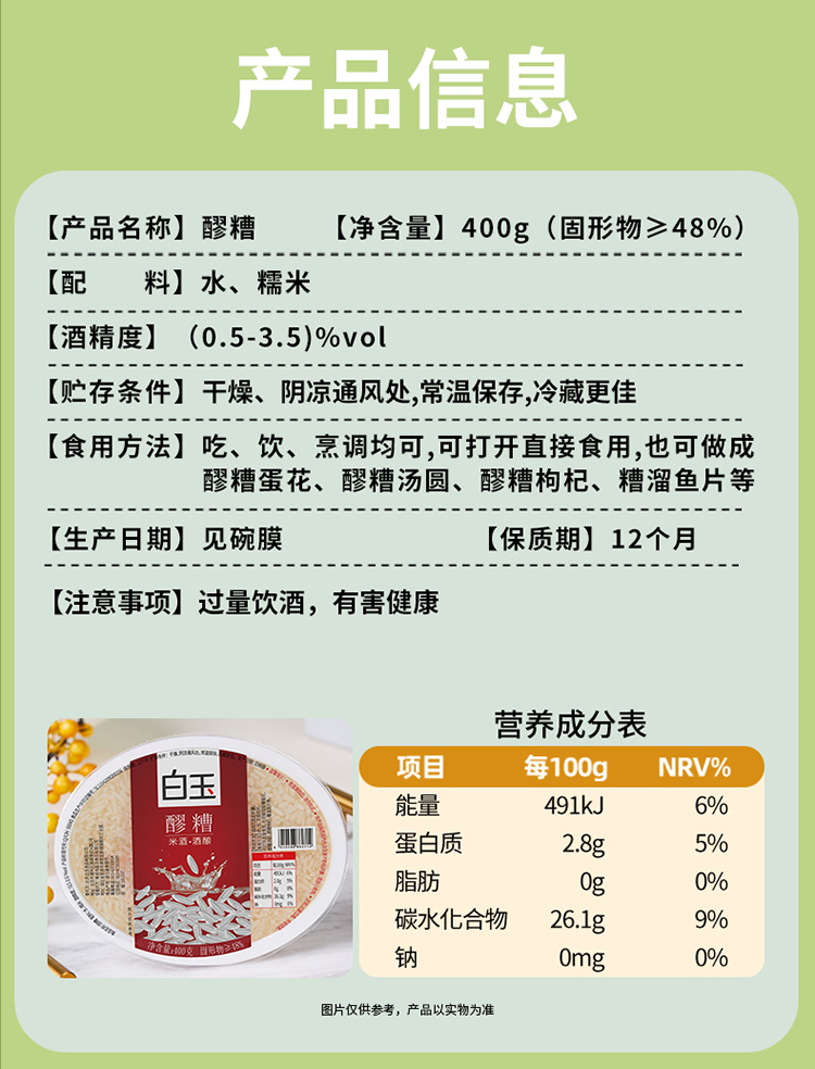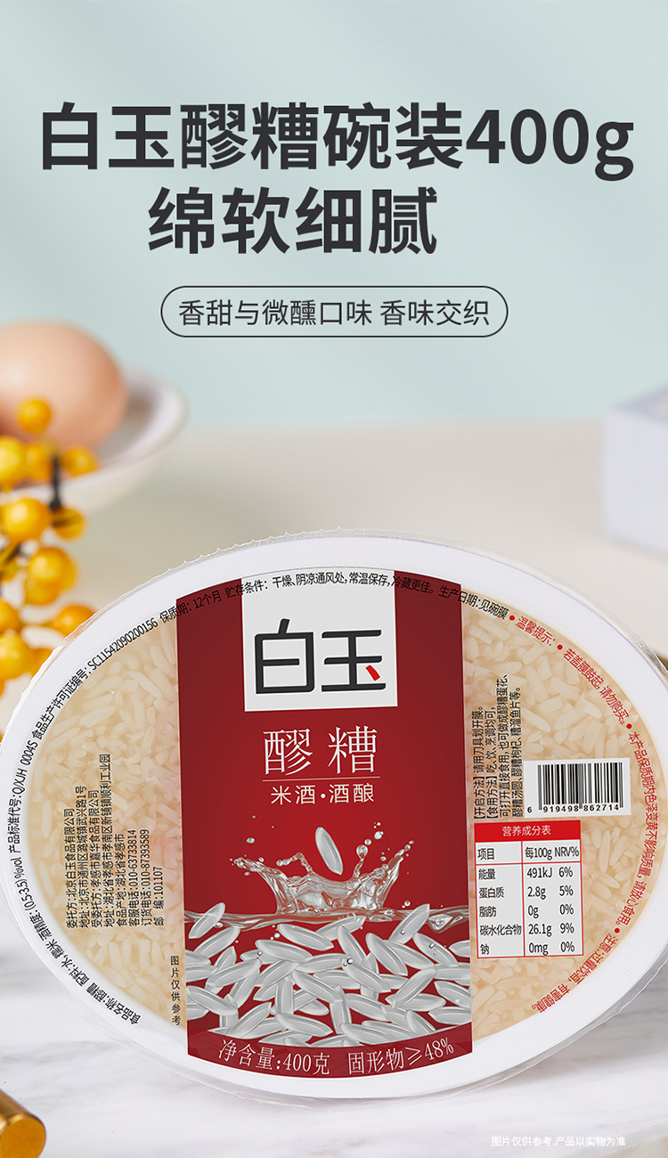 【首农】【白玉】醪糟碗装400g*4