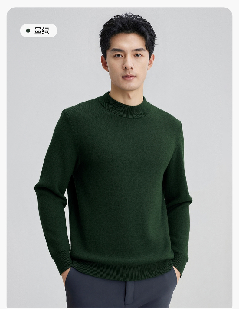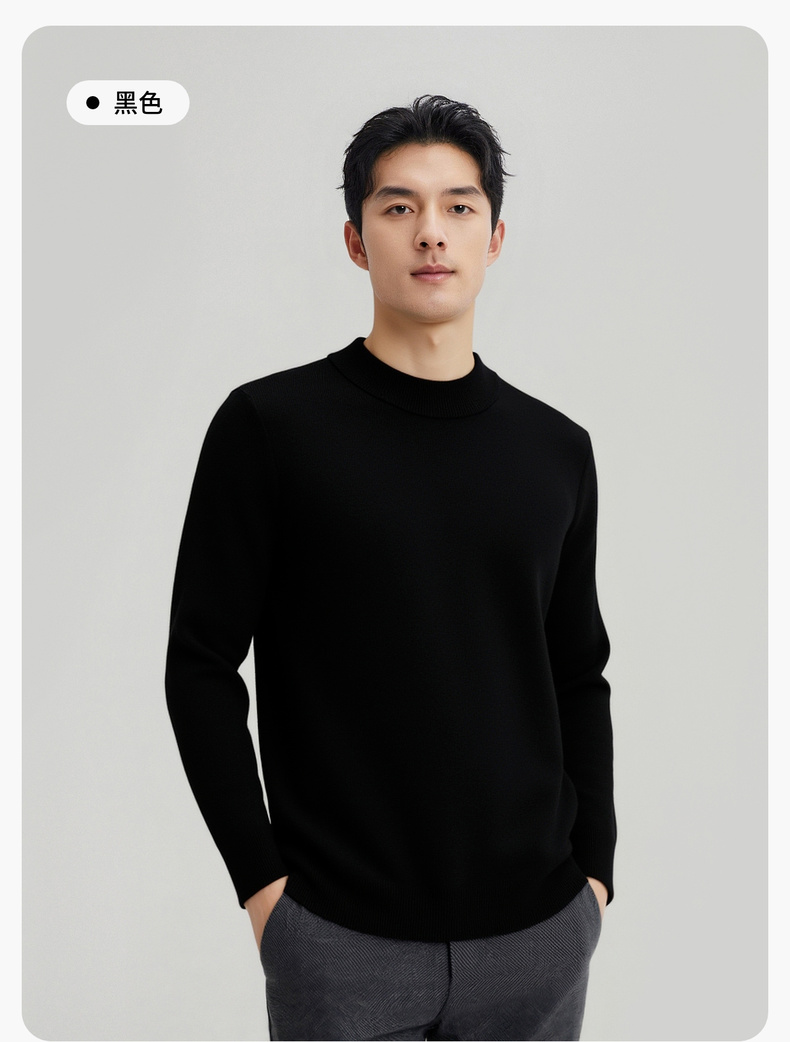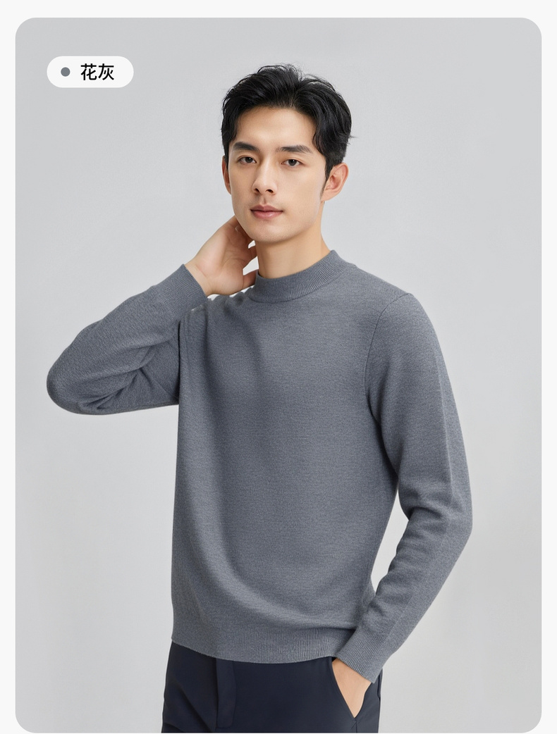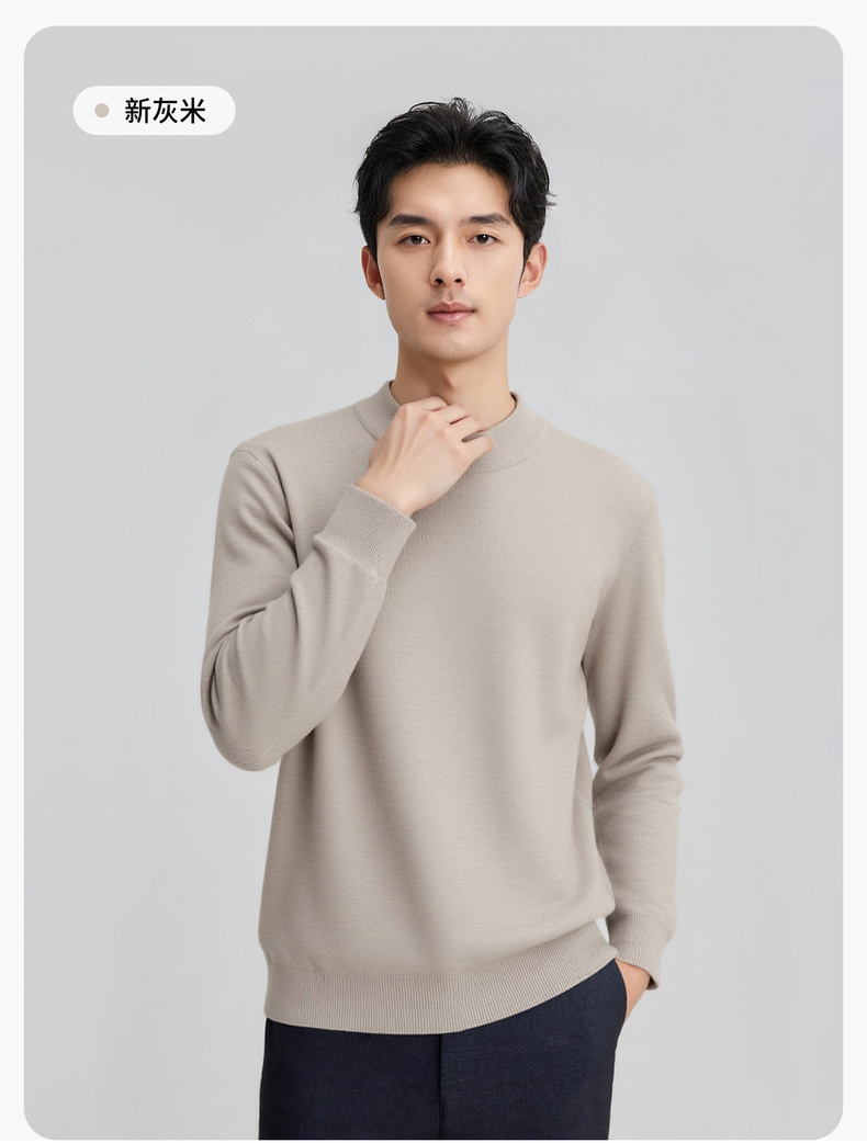【含绵羊毛】圣得西羊毛混纺针织衫2025秋新款素雅百搭耐穿毛衣男