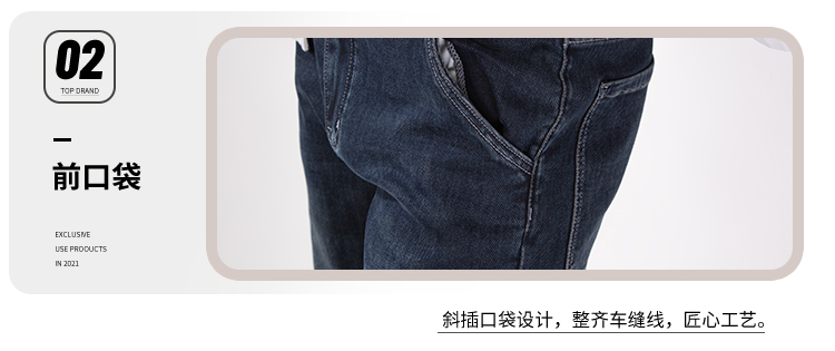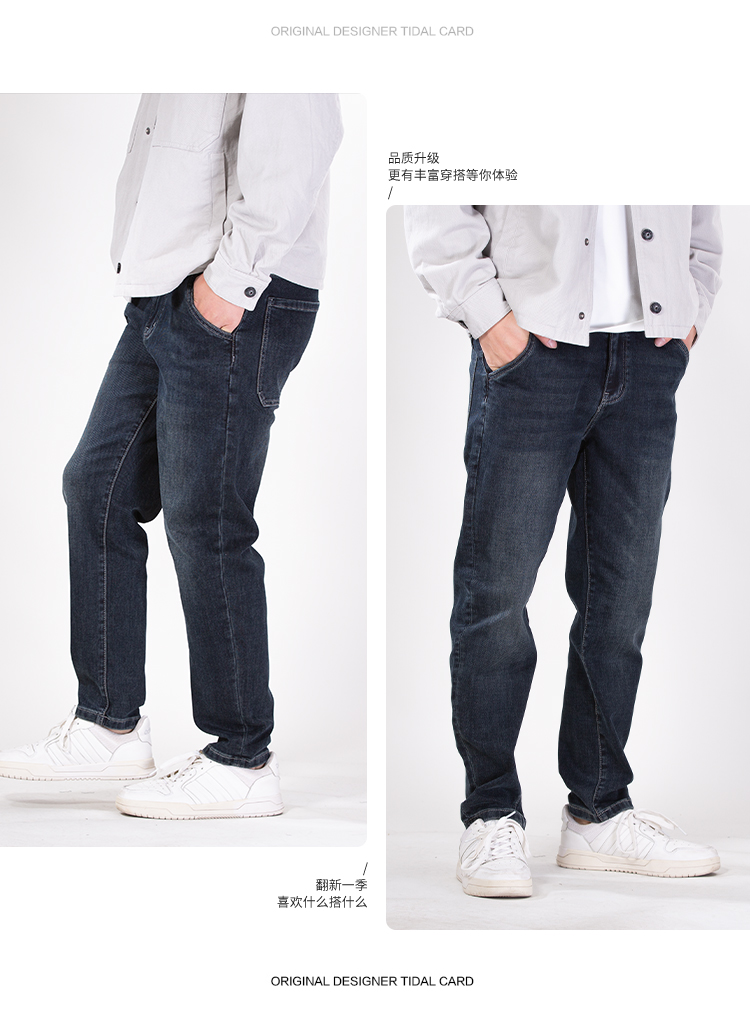 DRONKOO 2025 织带腰带表袋右后袋织唛中厚牛仔长裤