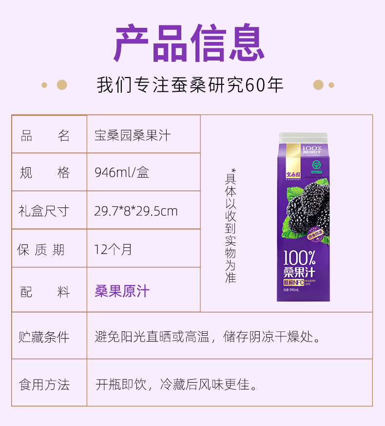 宝桑园桑果汁 946ml*4瓶礼盒装(蛋糕券价)