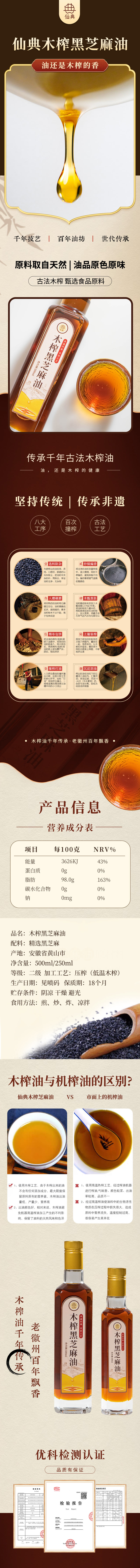 仙典 | 木榨纯黑芝麻油 500ml/250ml 非遗传统 古法工艺