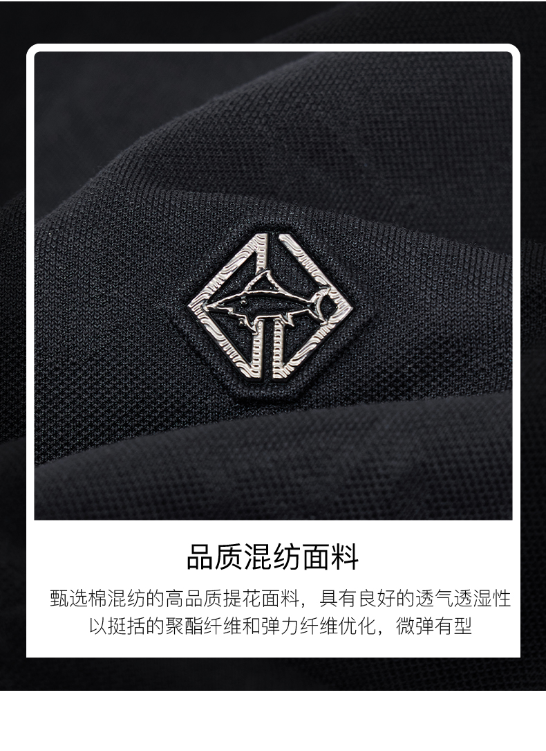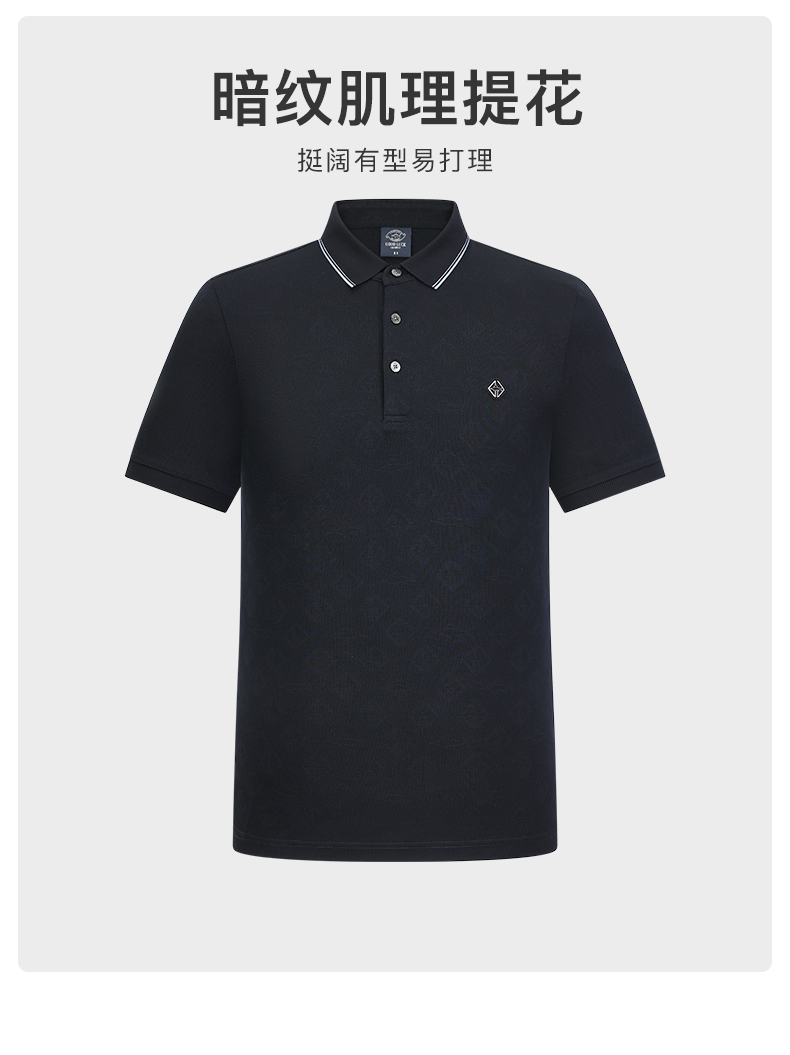 【莱赛尔】德鲨夏季新品短袖POLO衫男时尚暗纹提花翻领T恤