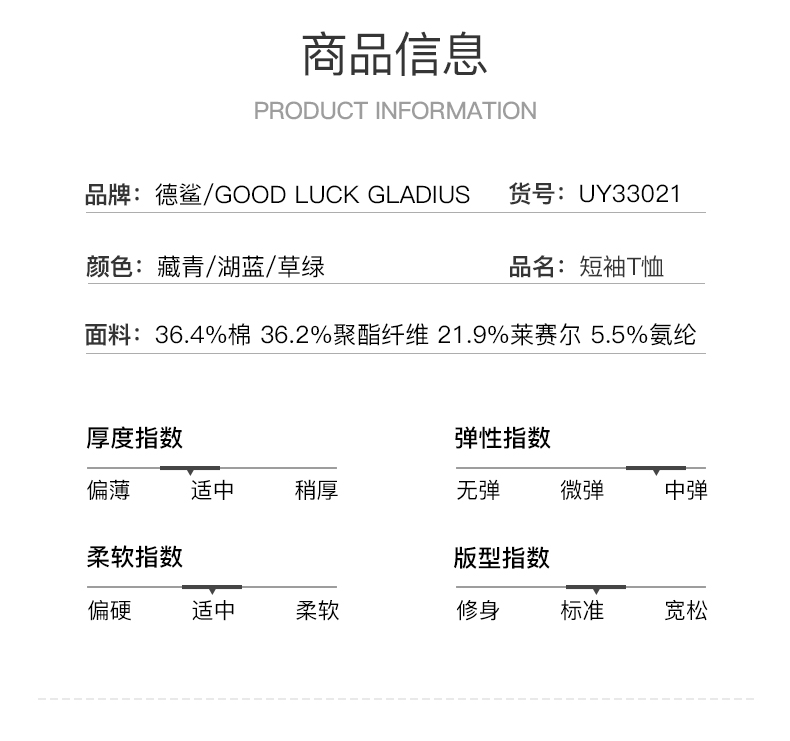 GOOD LUCK GLADIUS品牌由“浙江德鲨服饰有限公司”引进中国市场,经过多年发展,凭借完善的终端形象,规范化的销售管理,迅速赢得消费者的认可,引领国内消费流行,是成功人士首选男装品牌。