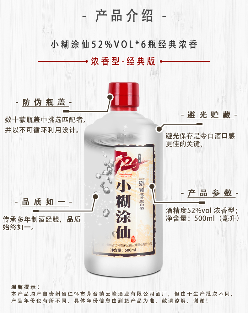 小糊涂仙 20周年 720畅饮版(裸瓶装)浓香型白酒 52度 500ml*6瓶 整箱装