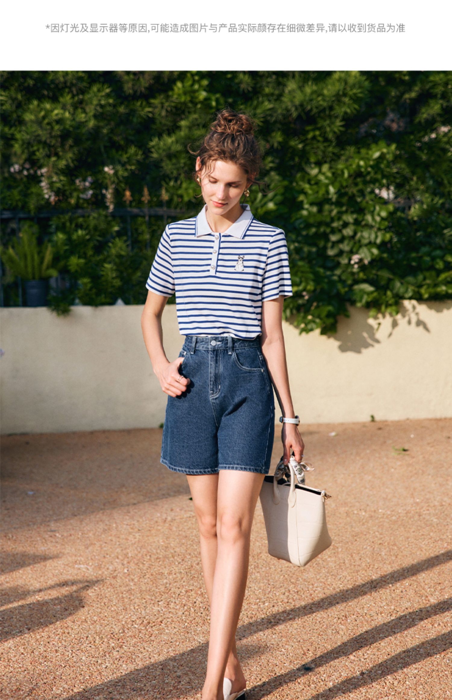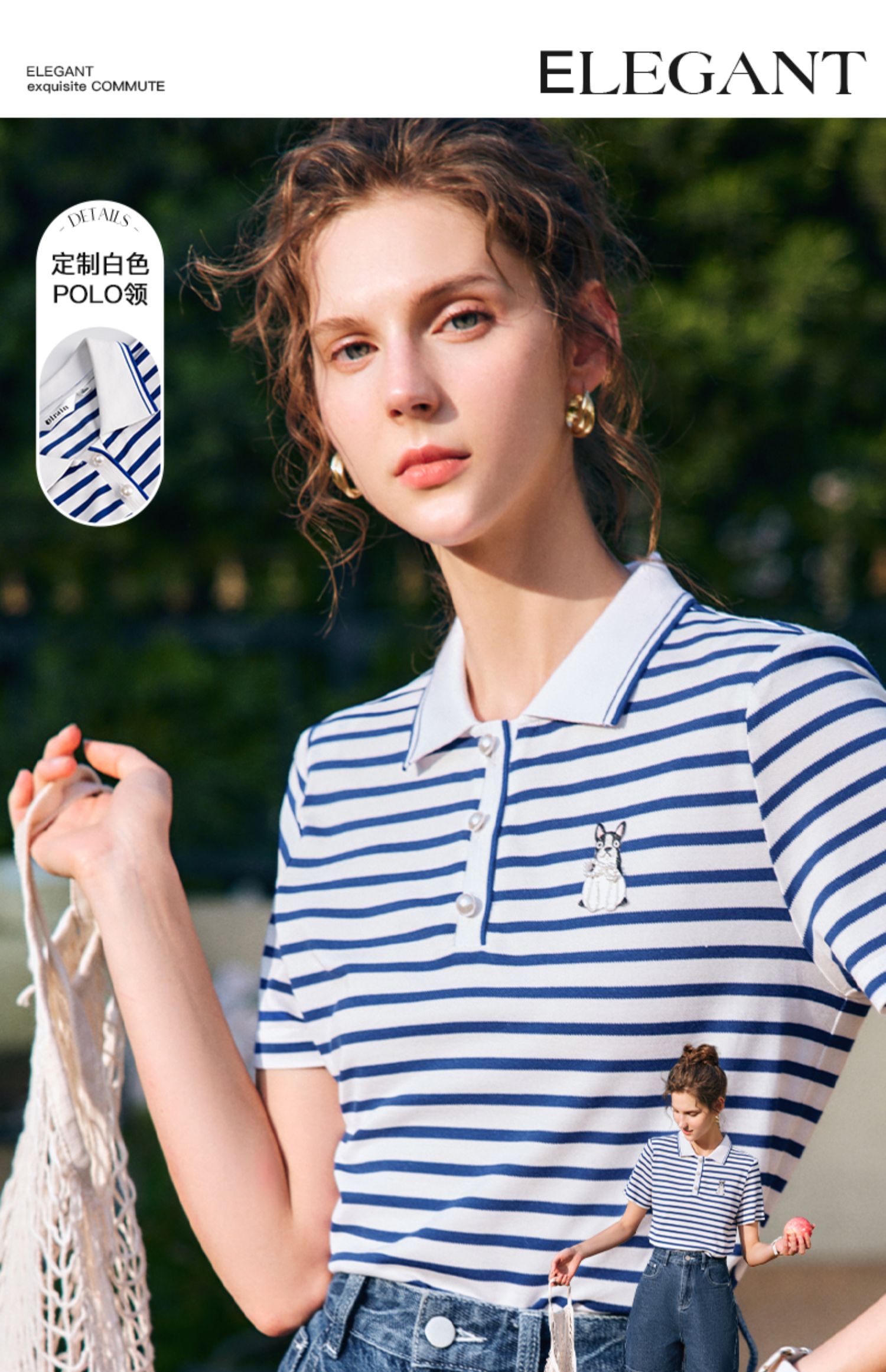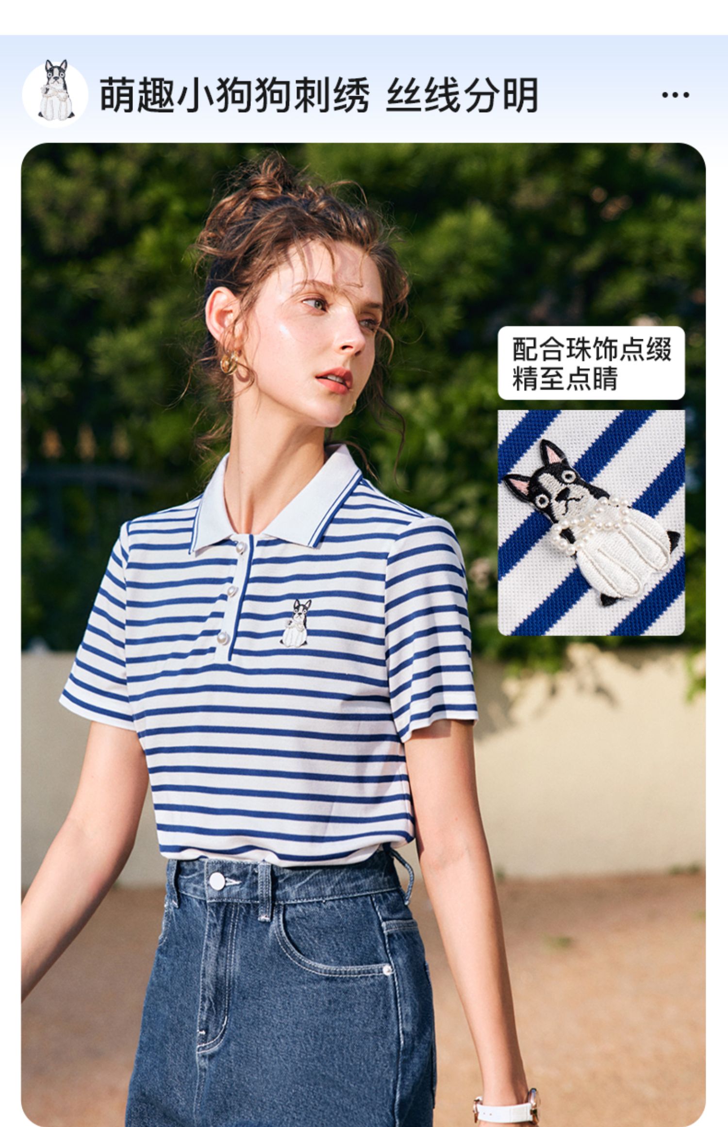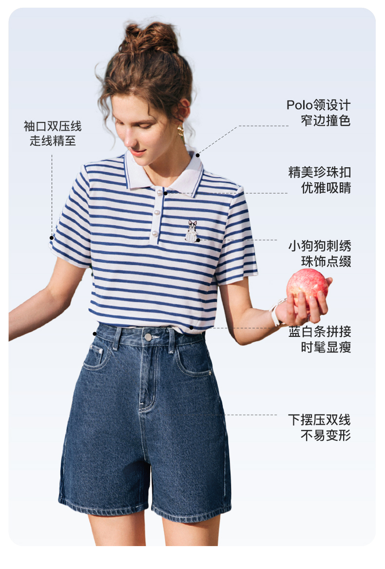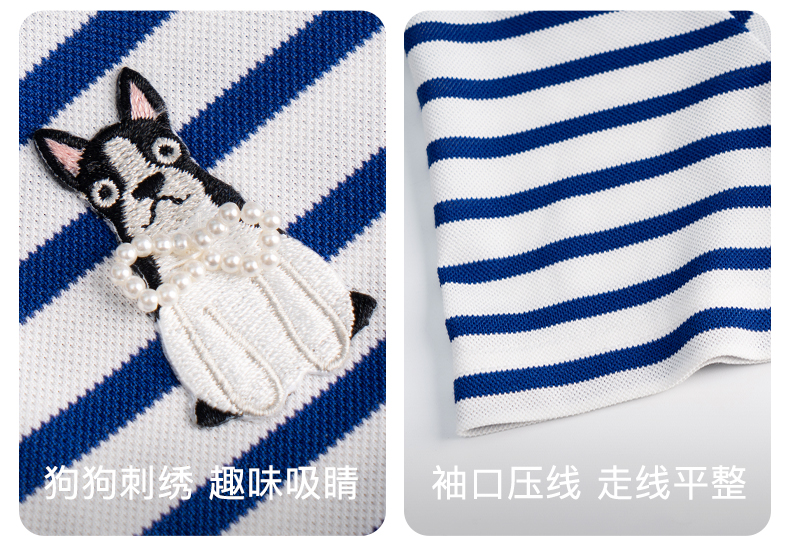 OLrain欧芮儿法式polo领条纹T恤女夏季2025年新款刺绣海军风上衣