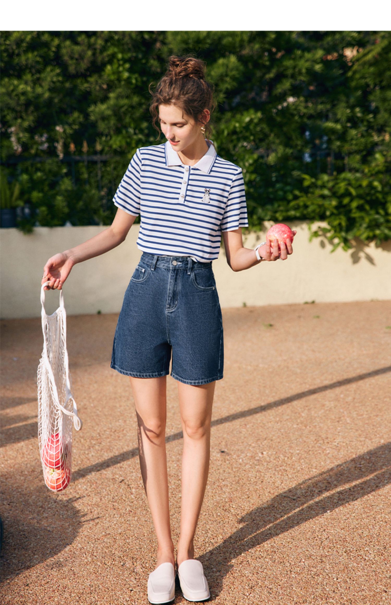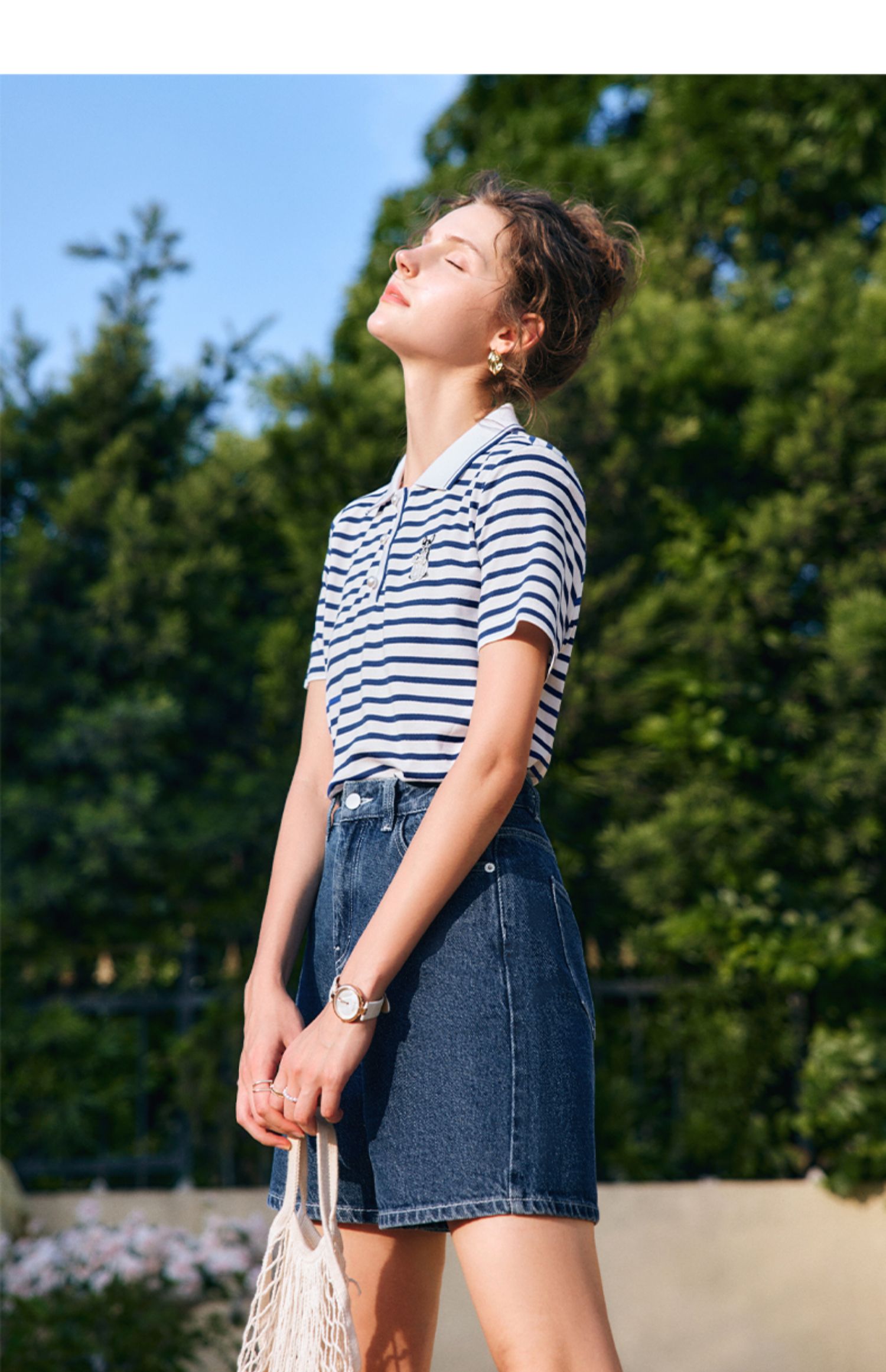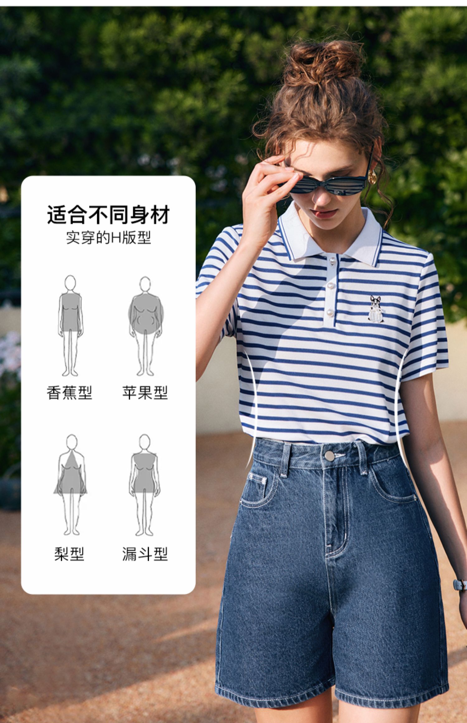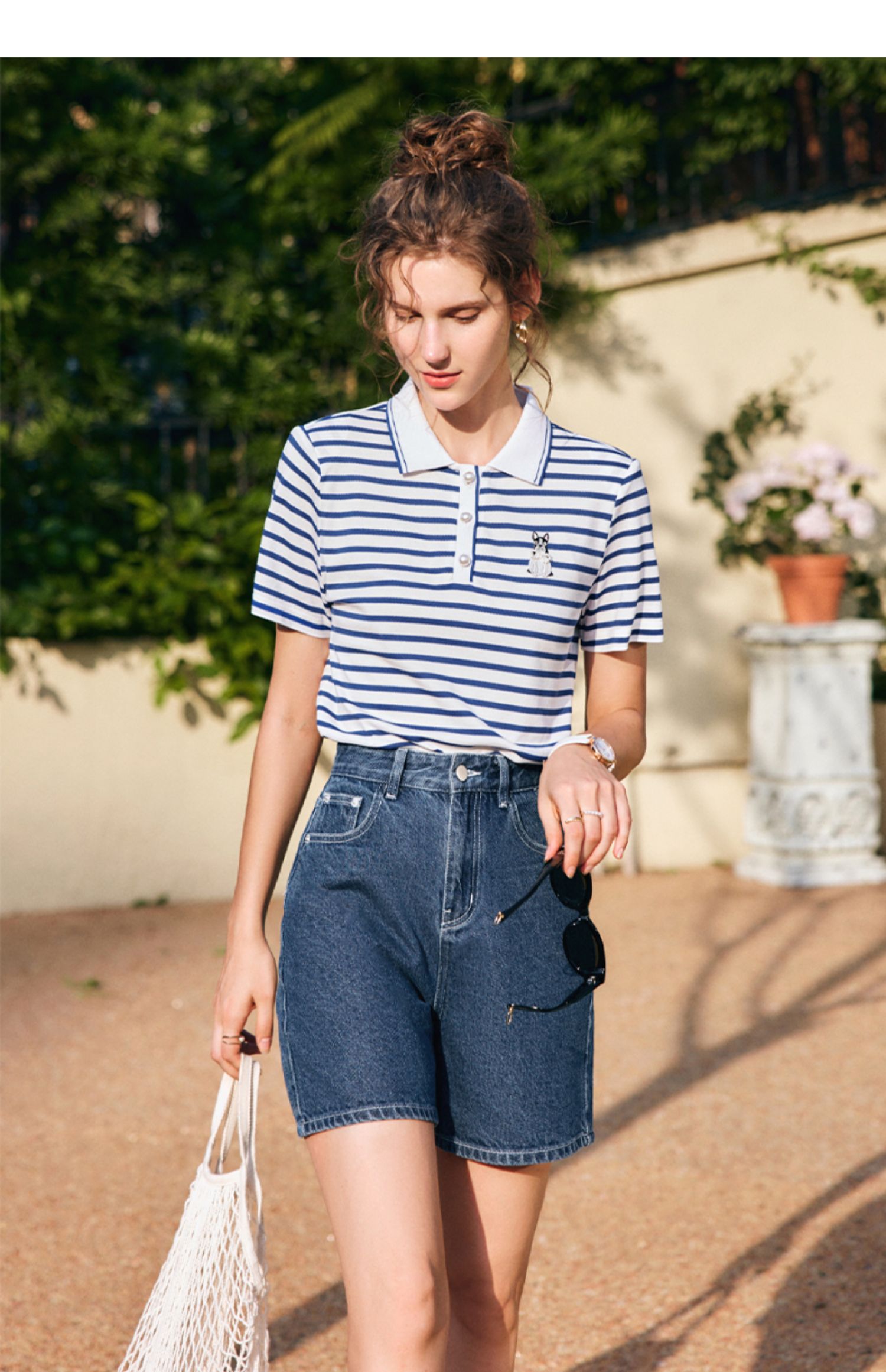 OLrain欧芮儿法式polo领条纹T恤女夏季2025年新款刺绣海军风上衣