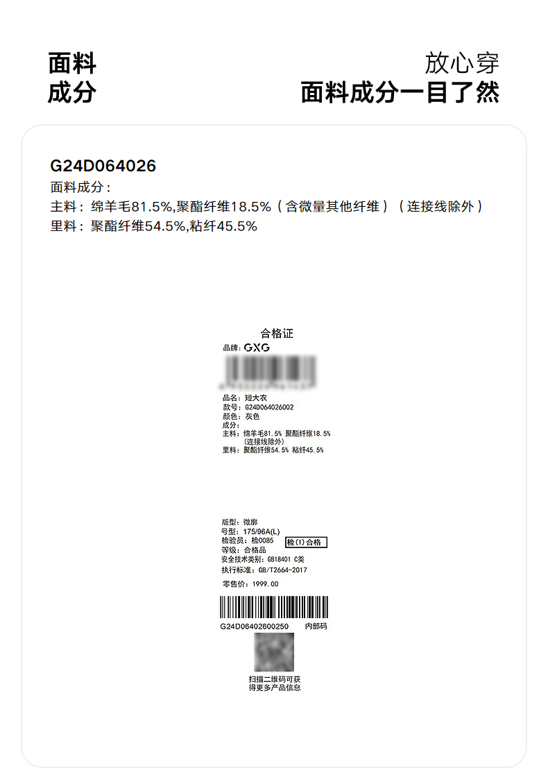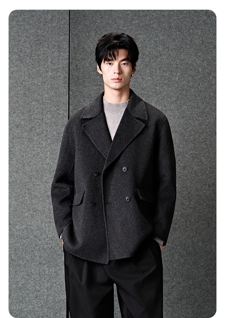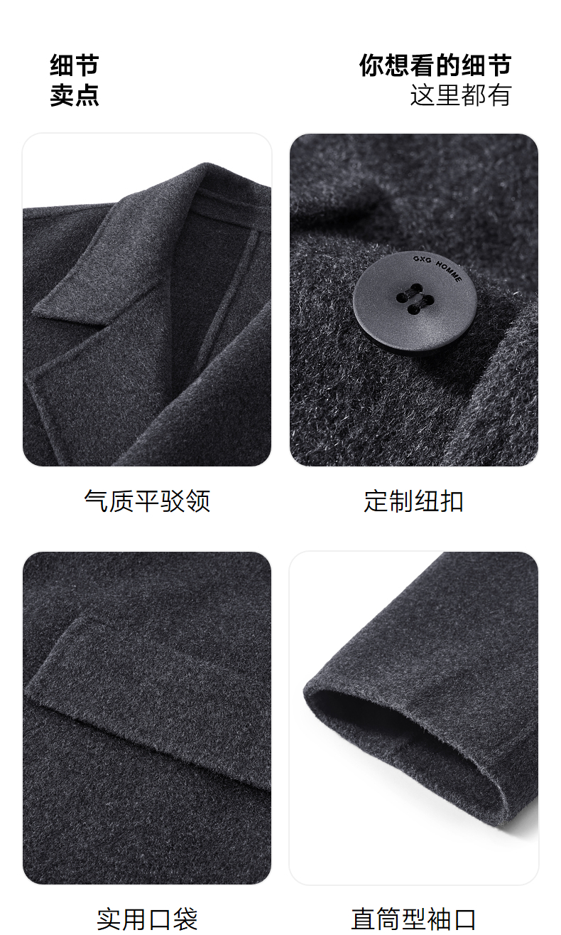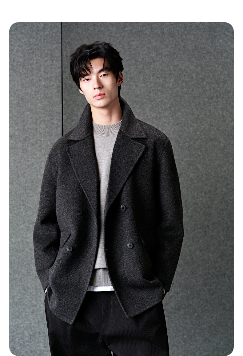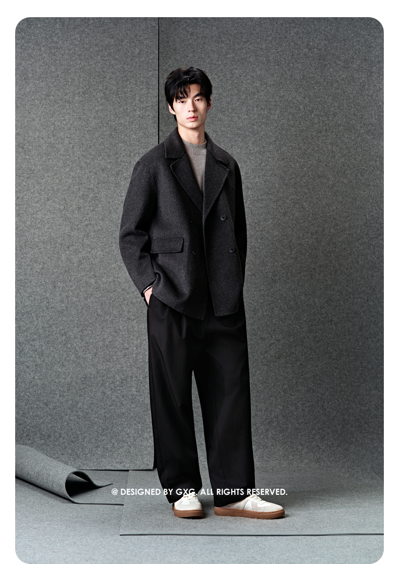 GXG男装 灰色商务通勤短款纯色西装短款羊毛外套男 冬季热卖