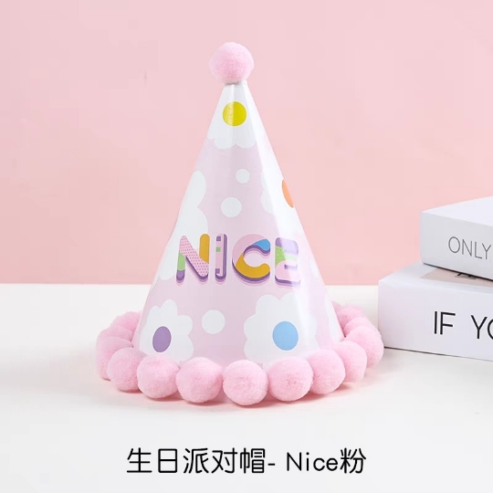 毛球生日帽【NICE款】 粉色/蓝色 毛球派对生日帽 生日氛围装饰帽子
