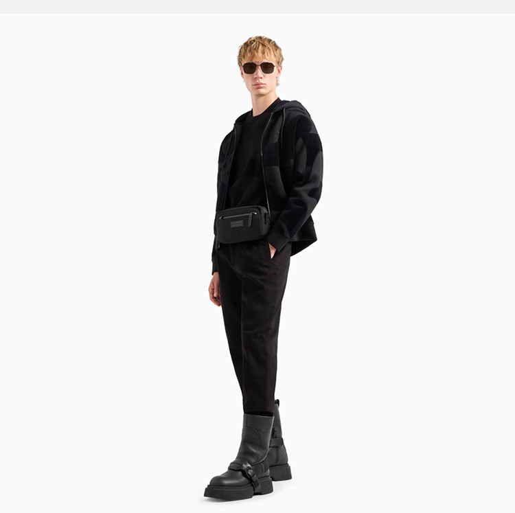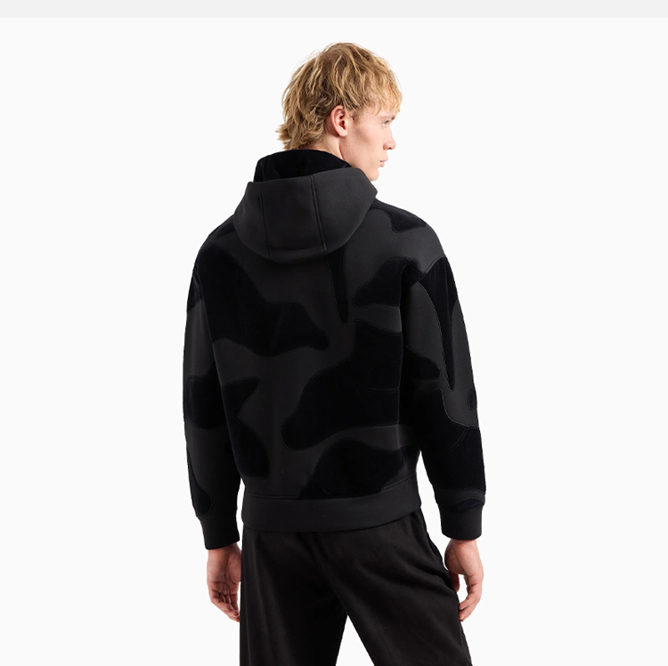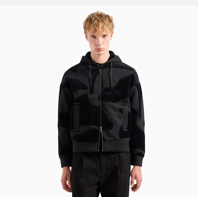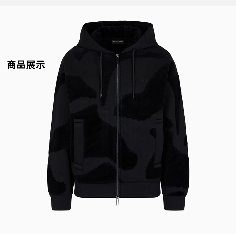 EMPORIO ARMANI 阿玛尼 男士超大号莫代尔拉链连帽运动外套 黑色 6R1MF9 1JUWZ 0999