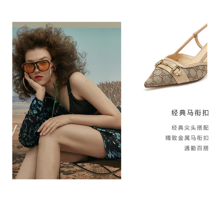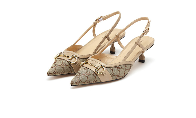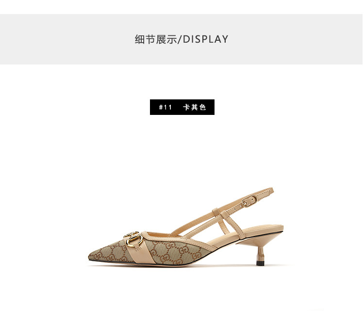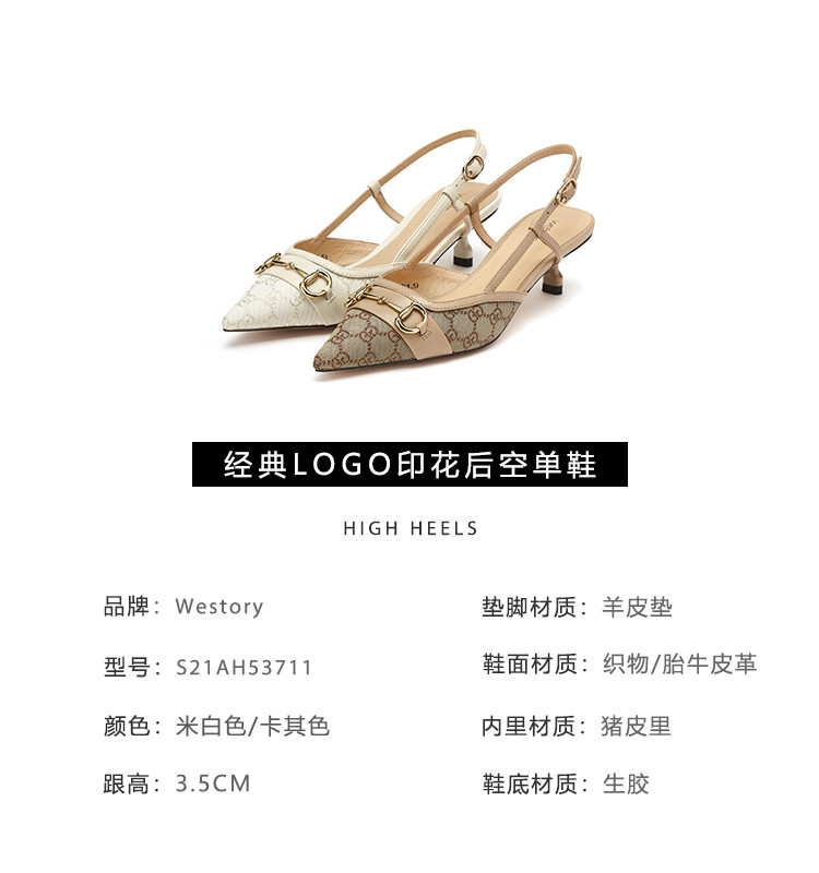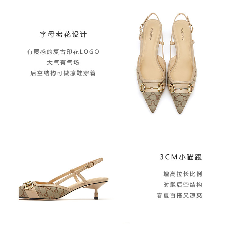 【2021夏季上新】马衔扣尖头后空舒适细跟中跟包头凉鞋女夏S21AH53711