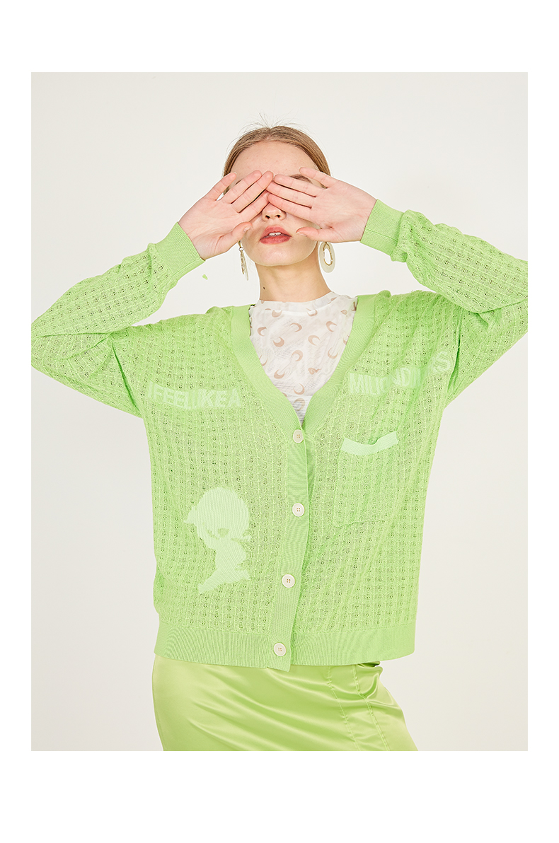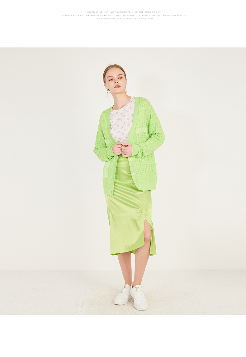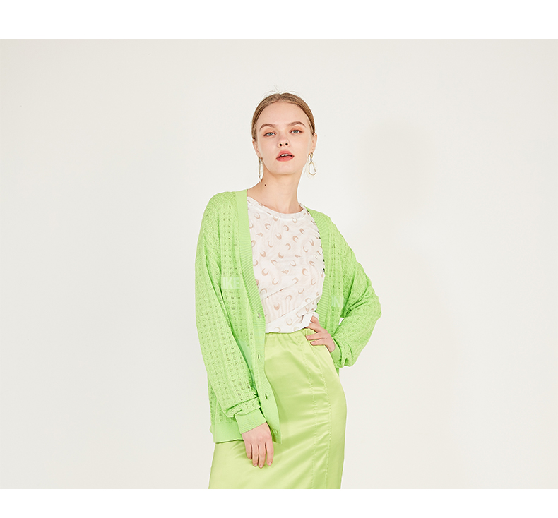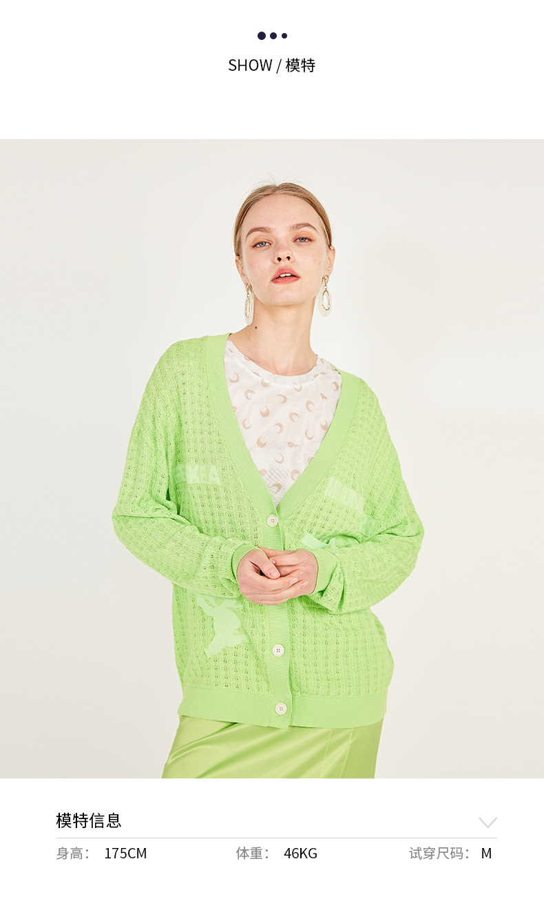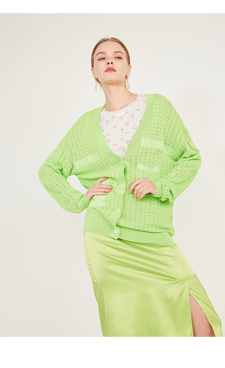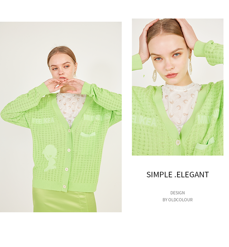 oldcolour春季休闲亮色网眼毛外套针织开衫女N12053240
