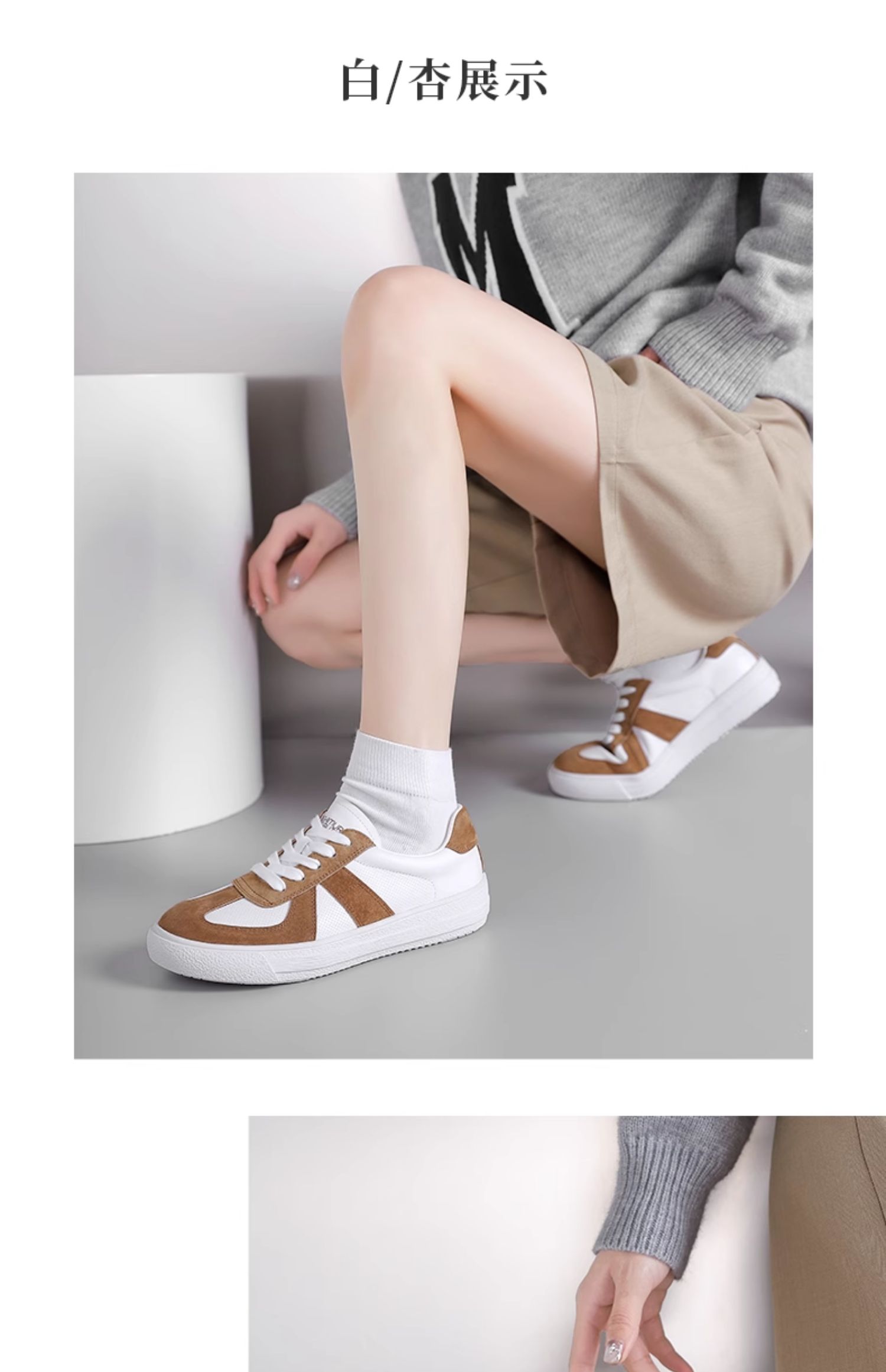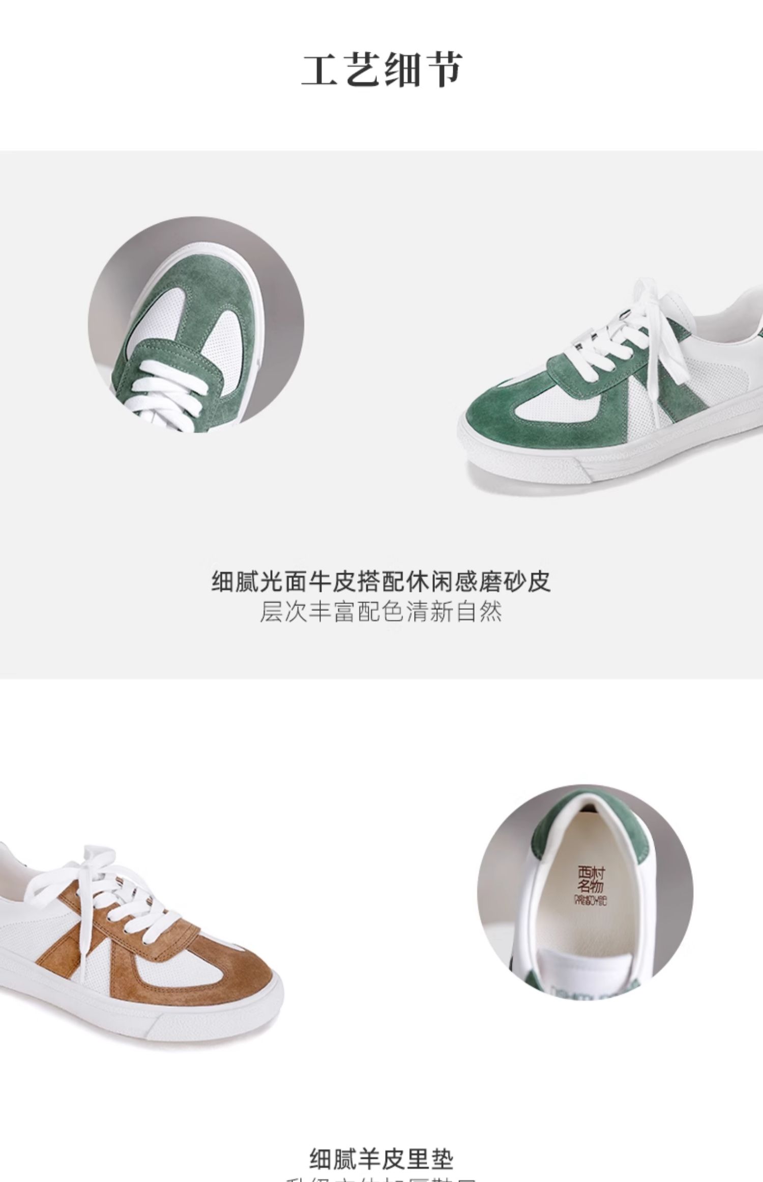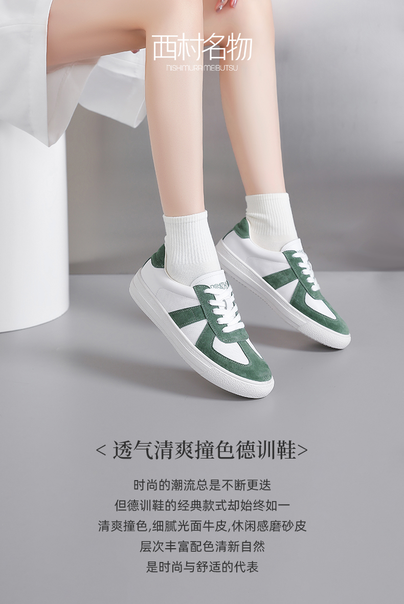 西村名物2024春夏新品真皮软底运动轻便休闲复古德训鞋女鞋T24AM11371