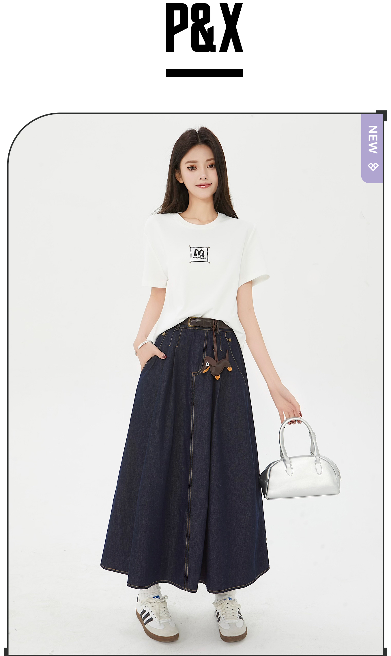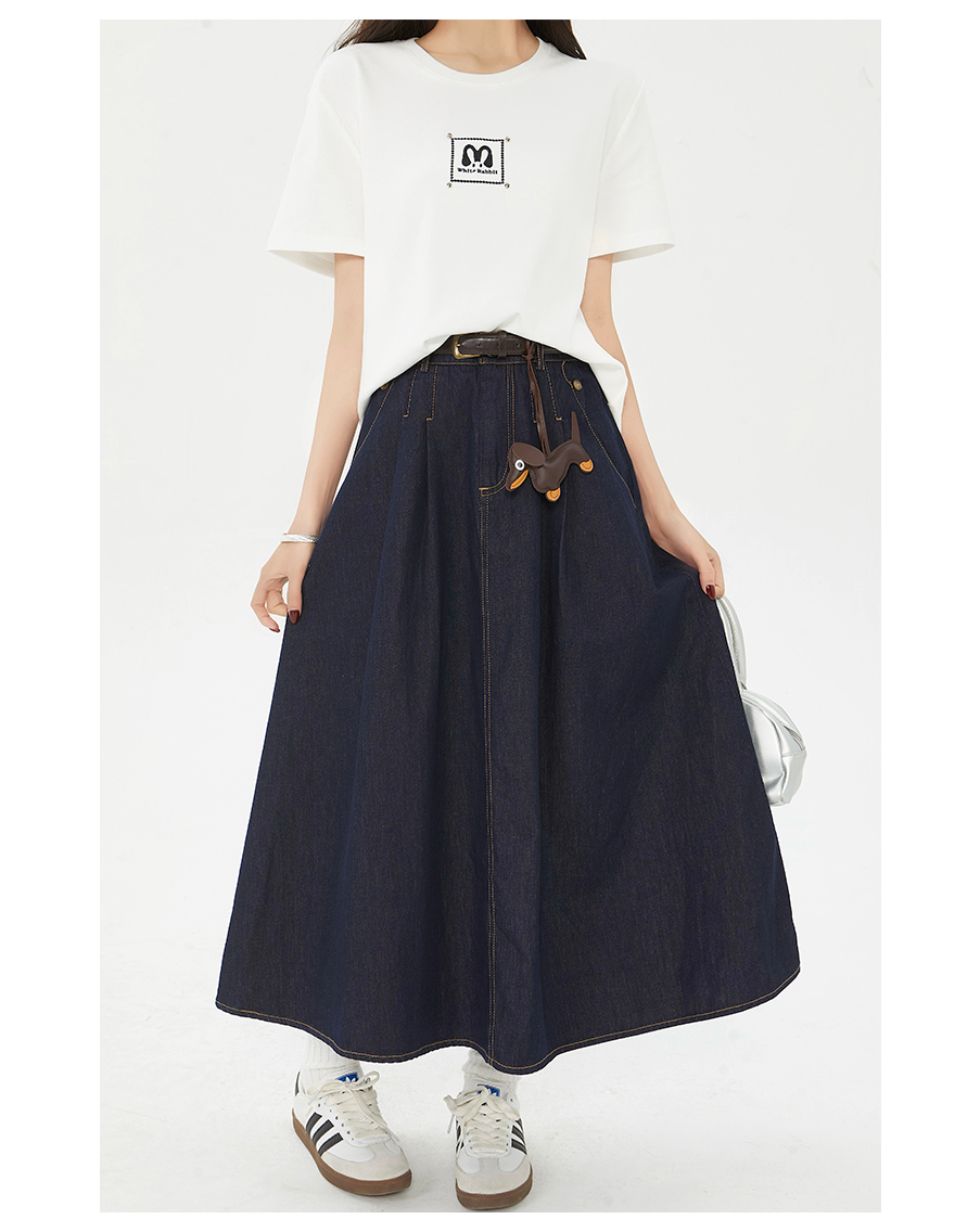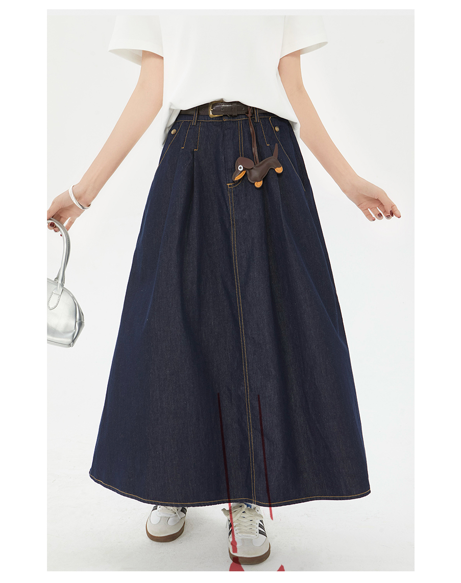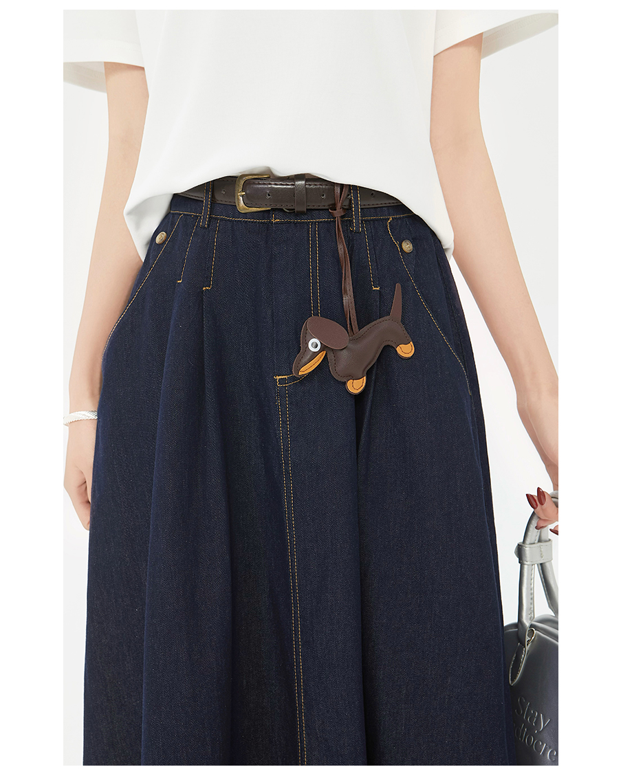 P&X设计师女装夏季复古牛仔半身裙遮胯大A字伞裙 825207335 深蓝