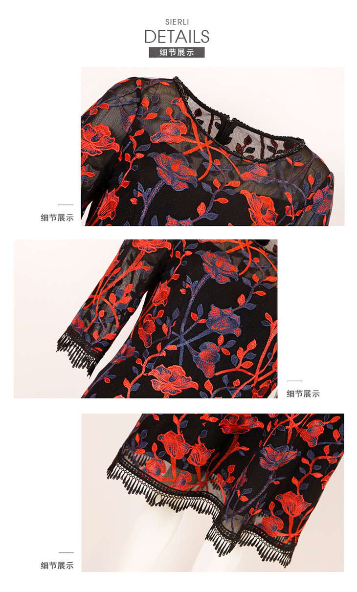 QE63A瑟俪(斯尔丽高端)舒适柔软低圆领撞色超细羊毛提花毛衣连衣裙