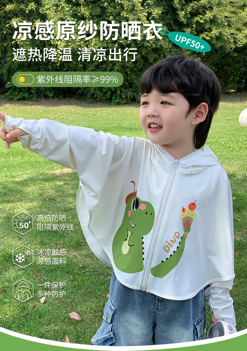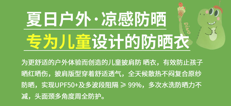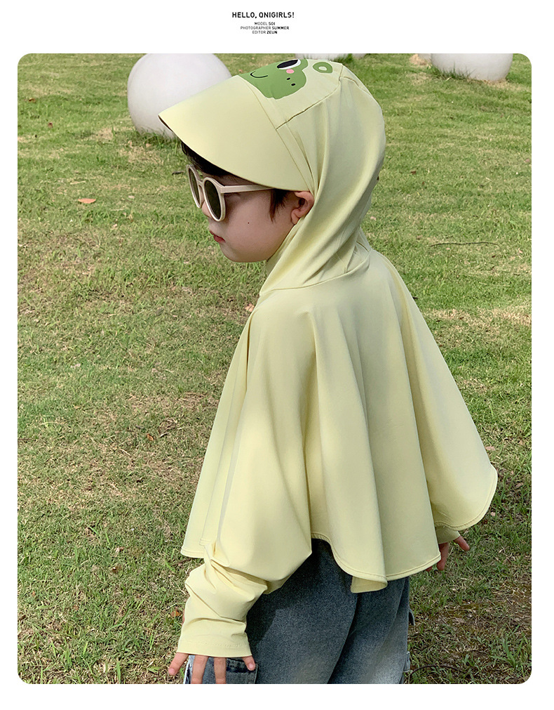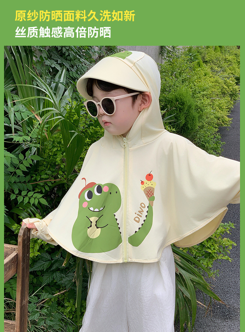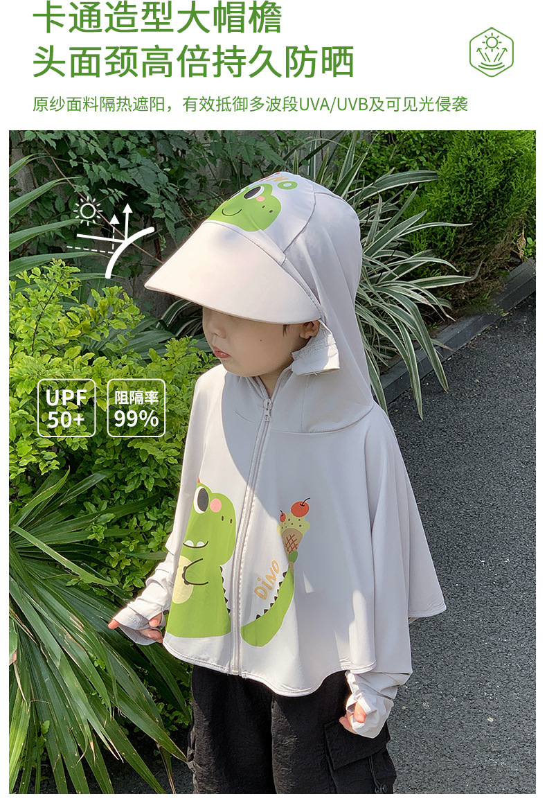 【夏日户外❗️儿童凉感防晒衣】披肩版型宇着舒适透气,全天候散热不闷复合原纱,实现UPF50+及多波段阻隔 ≥ 99%,多次水洗防晒力不 减,头面颈多角度周全防护,冰丝防紫外线轻薄透气原纱凉感大帽檐L