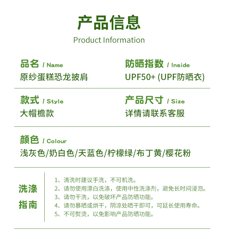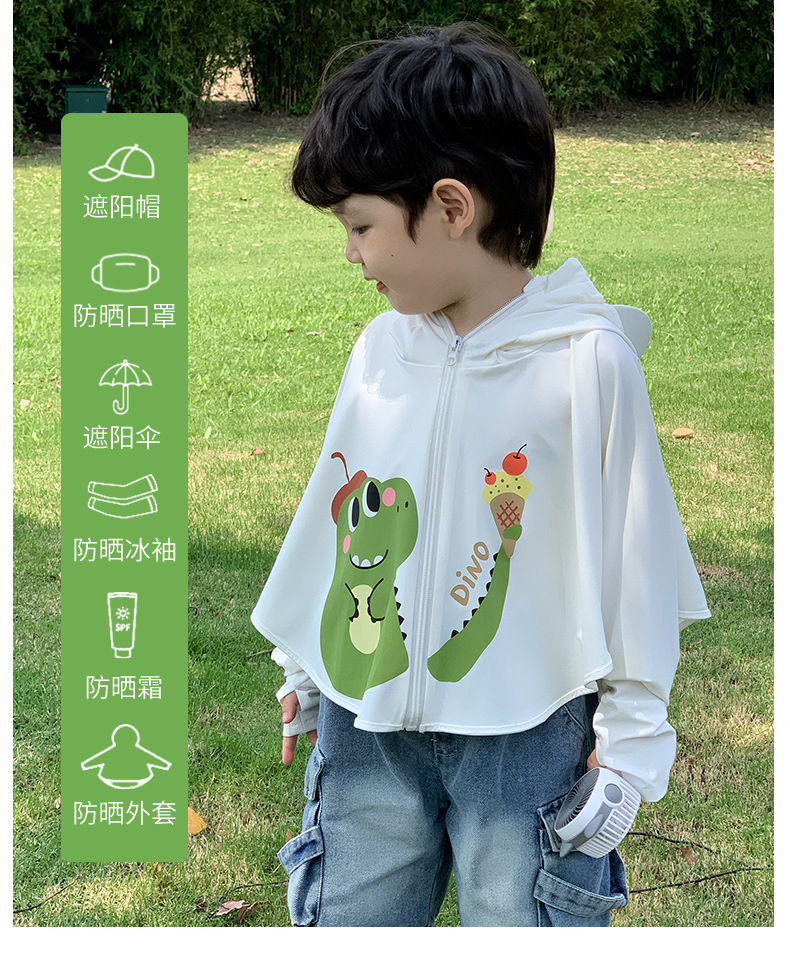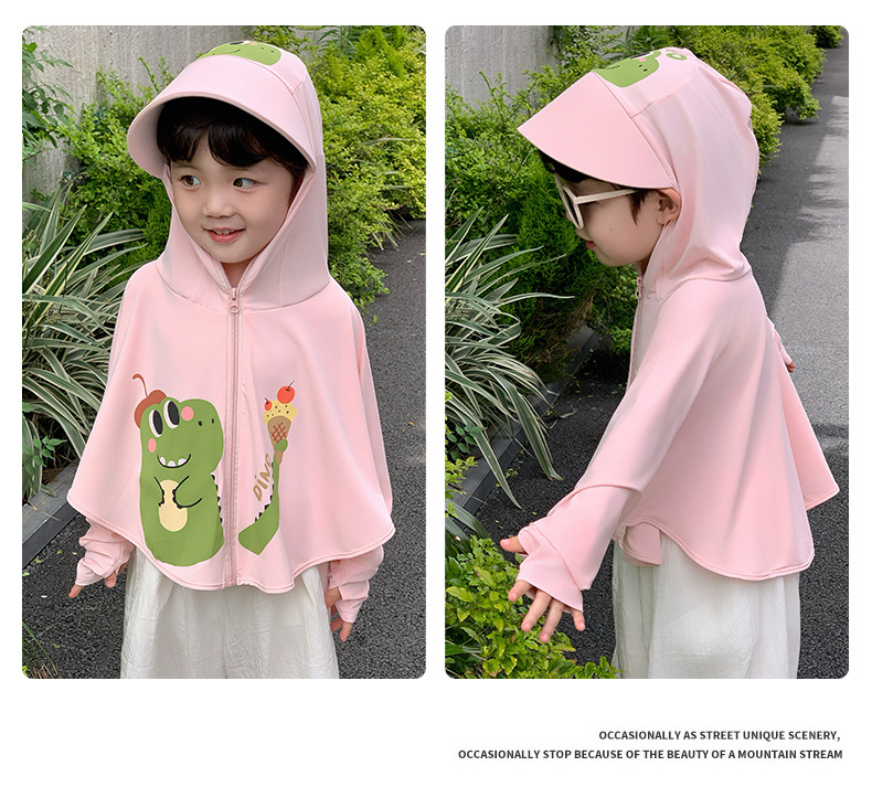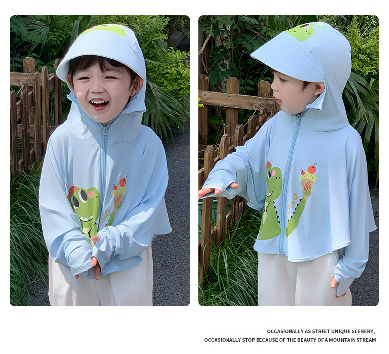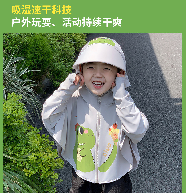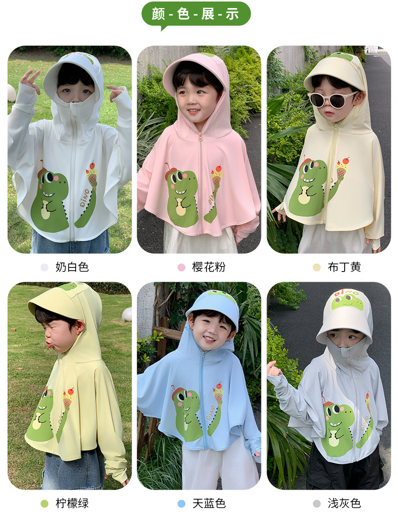 【夏日户外❗️儿童凉感防晒衣】披肩版型宇着舒适透气,全天候散热不闷复合原纱,实现UPF50+及多波段阻隔 ≥ 99%,多次水洗防晒力不 减,头面颈多角度周全防护,冰丝防紫外线轻薄透气原纱凉感大帽檐L