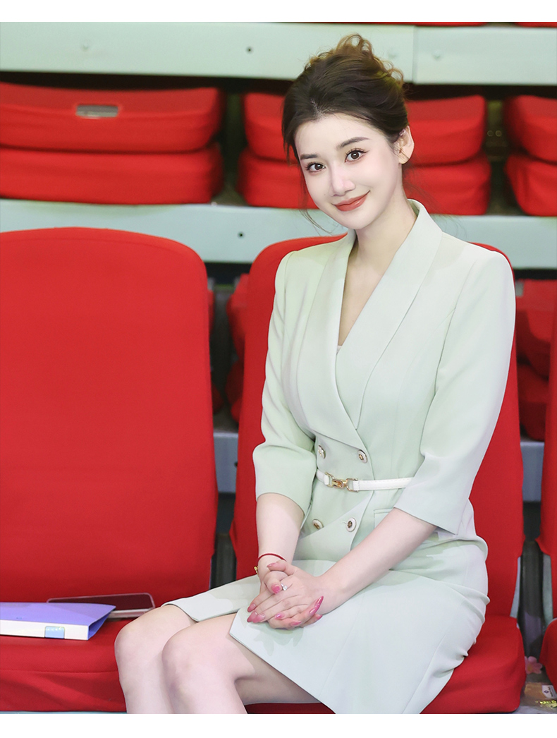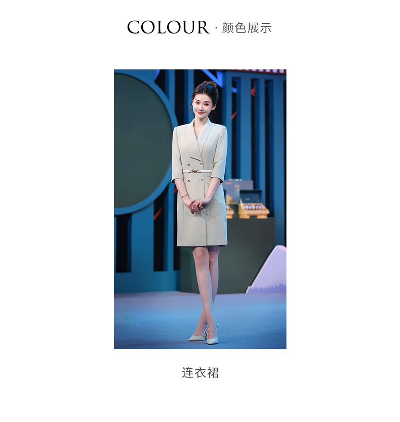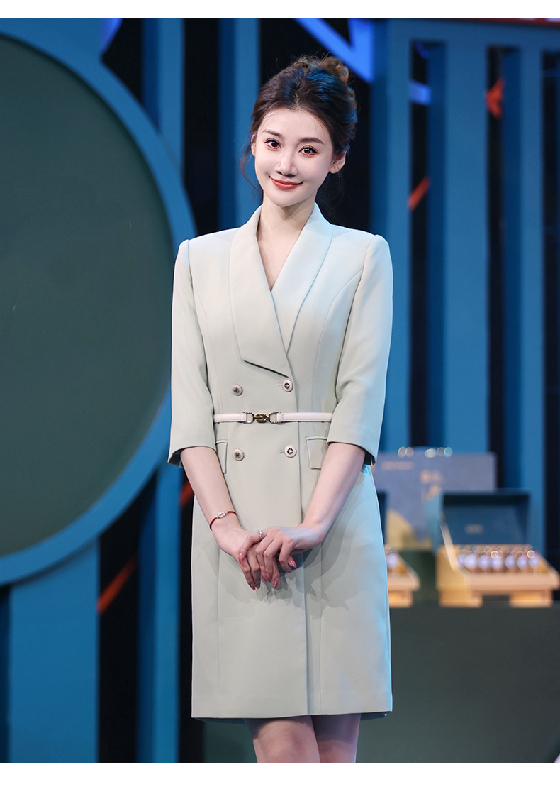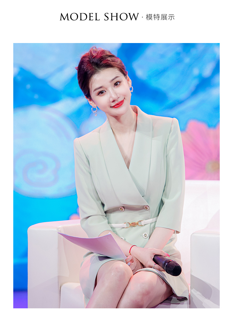 IWY/绿色教师录课正装西装连衣裙女七分袖播音主持人演讲比赛服装Q14235