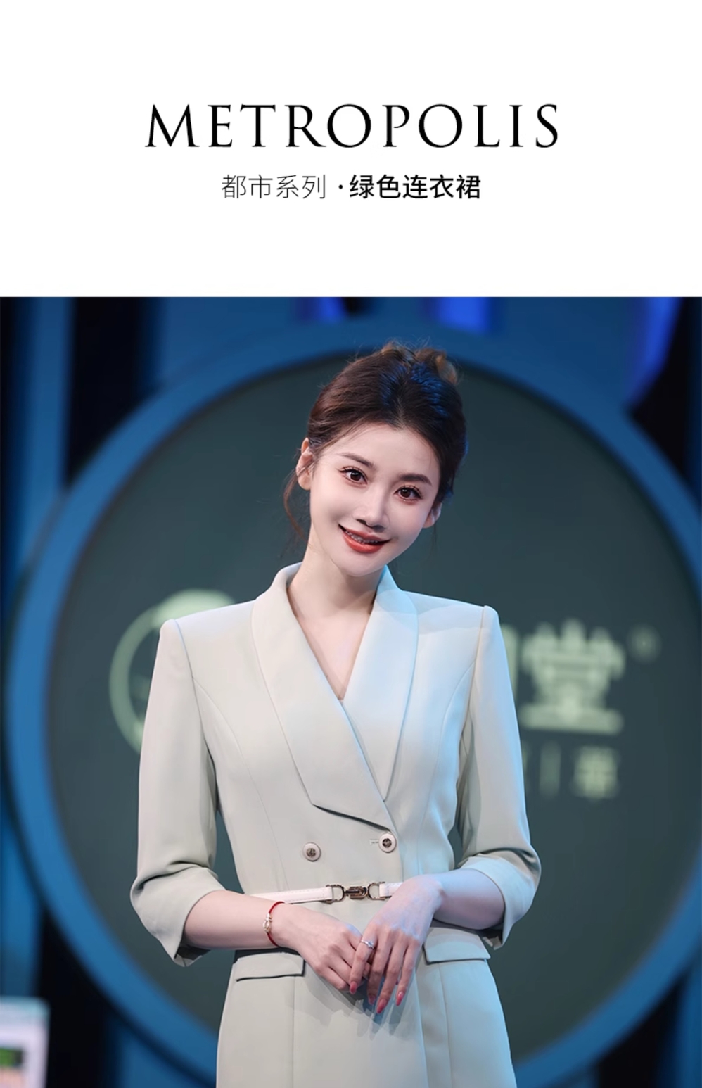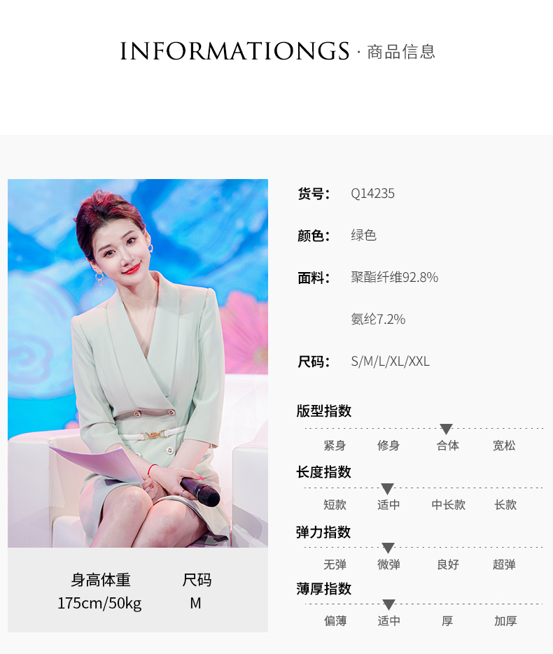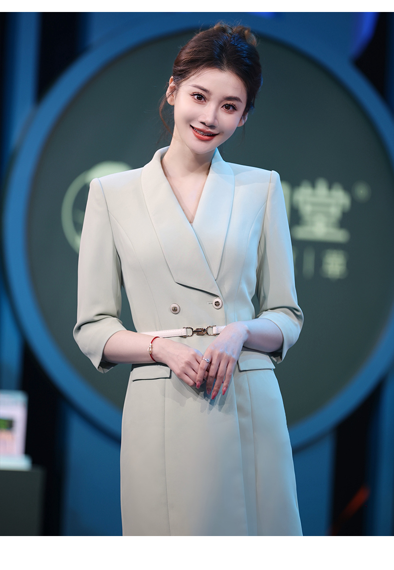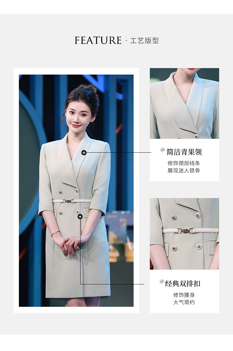 IWY/绿色教师录课正装西装连衣裙女七分袖播音主持人演讲比赛服装Q14235