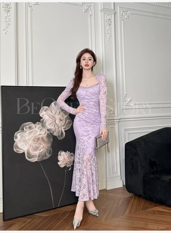 【大货捡漏,不退不换】 【美神可露莉】早春精致重工珍珠水晶钻带胸垫鱼尾连衣裙