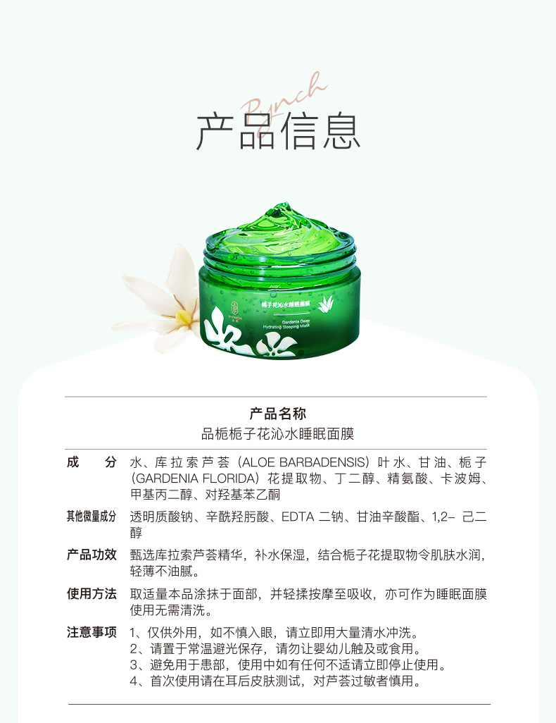栀子花芦荟睡眠面膜 免洗补水保湿 控油祛痘 熬夜救急