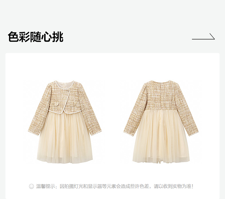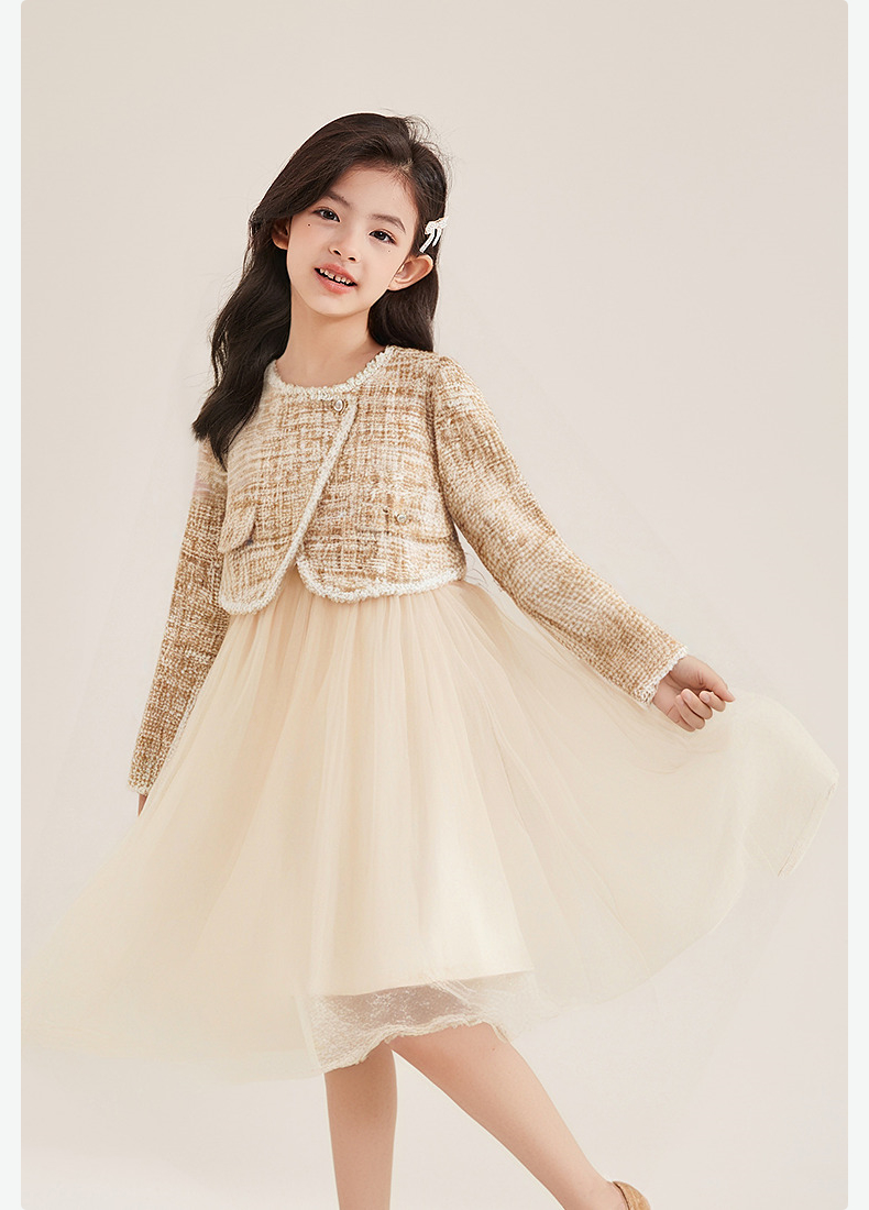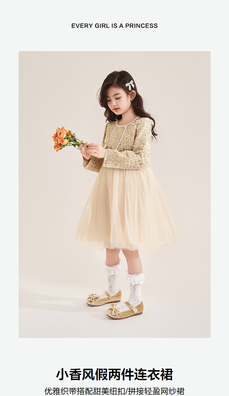 笛莎Deesha 童装女童连衣裙2025秋新款女童小香风假两件连衣裙