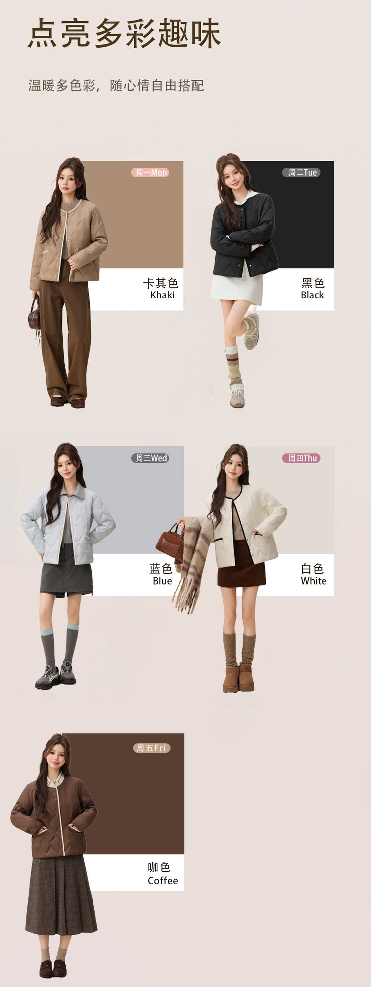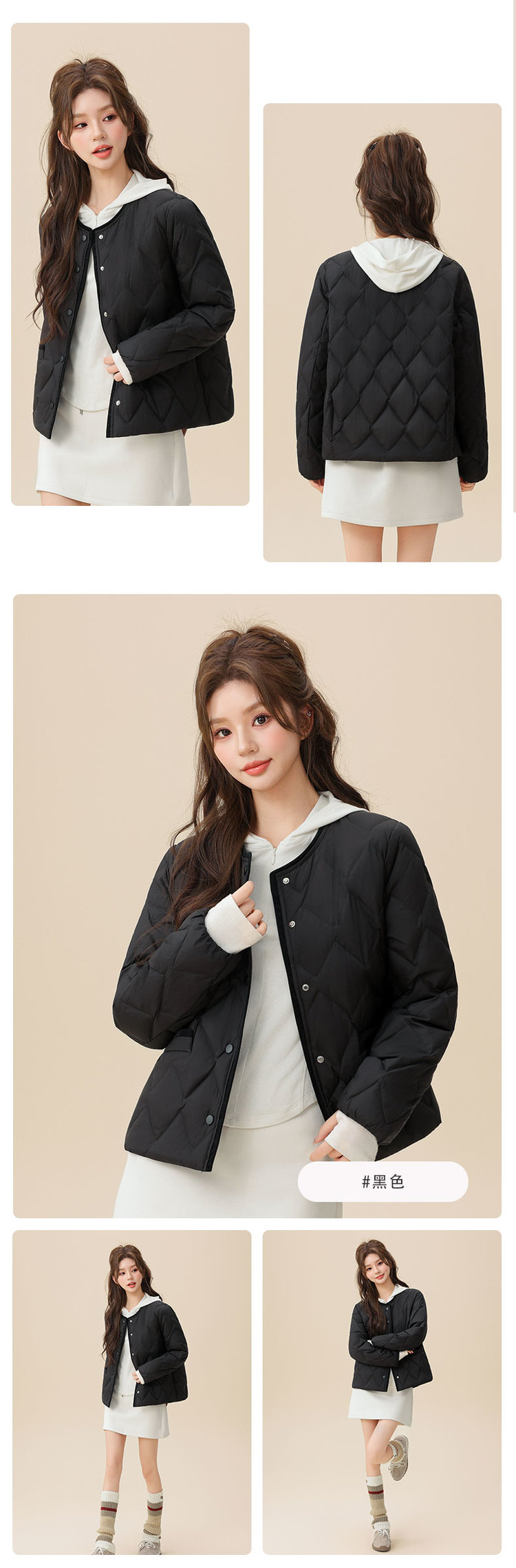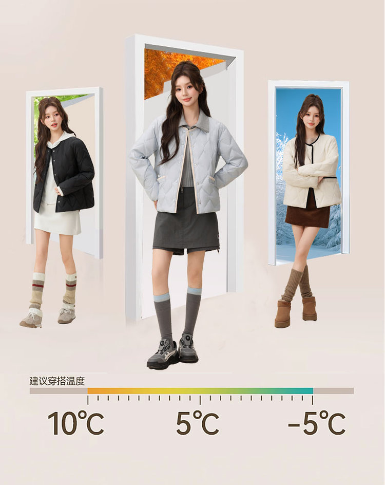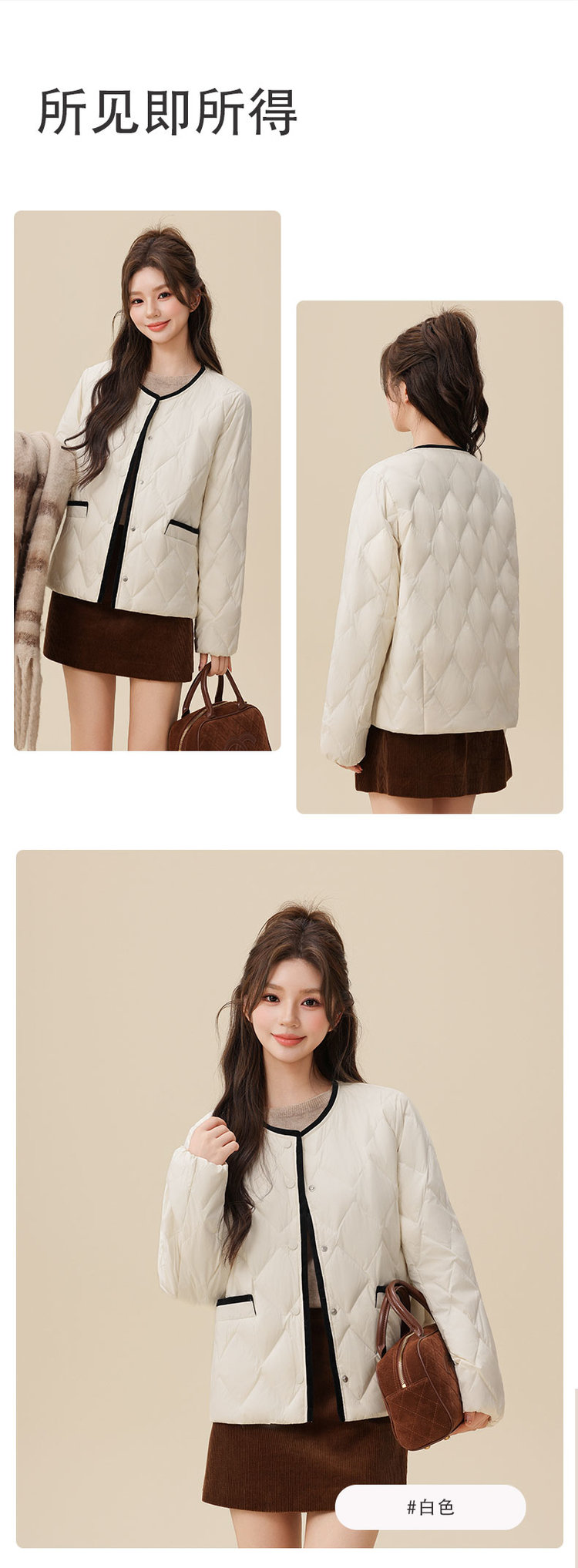 ✅ 轻量化,通勤/旅行随身带,折叠后的体积小。✅ 保暖性:600+蓬松度白鸭绒,采用新国标90绒,北方初冬,深冬可以搭配大衣,南方一件过冬。✅韩系设计,圆领设计简单大气又不失俏皮,多种场所随意搭配,菱格设计不显臃肿的“纸片人”效果。✅冬季出门百搭神器,搭配短裙+长靴=韩剧女主出街,搭配长裙+小皮鞋/小白鞋=小说白月光回归,甚至可以搭配长裤+高领内搭=都市丽人的日常穿搭