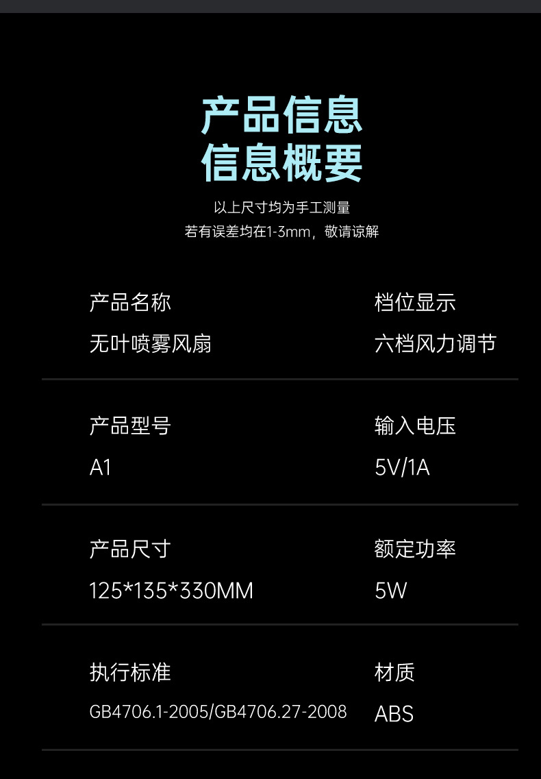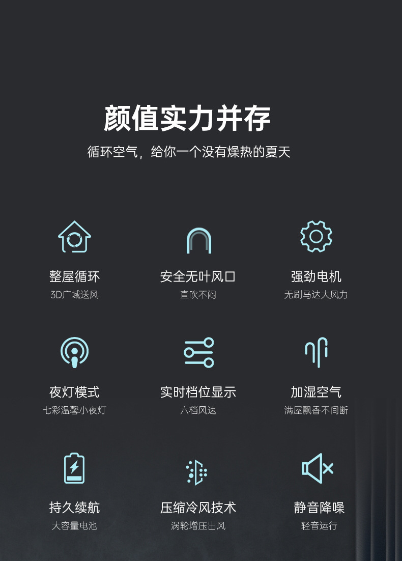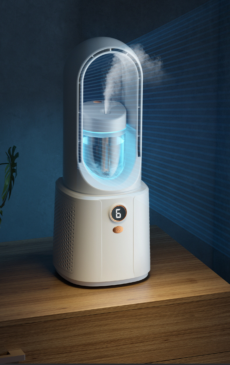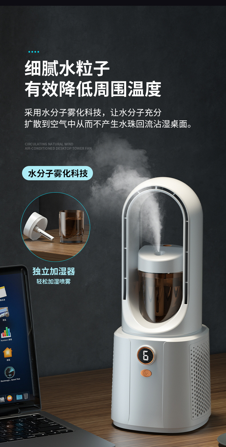 【台式落地静音无叶喷雾风扇】多档强风制冷 usb充电便携式夜灯加湿扇
